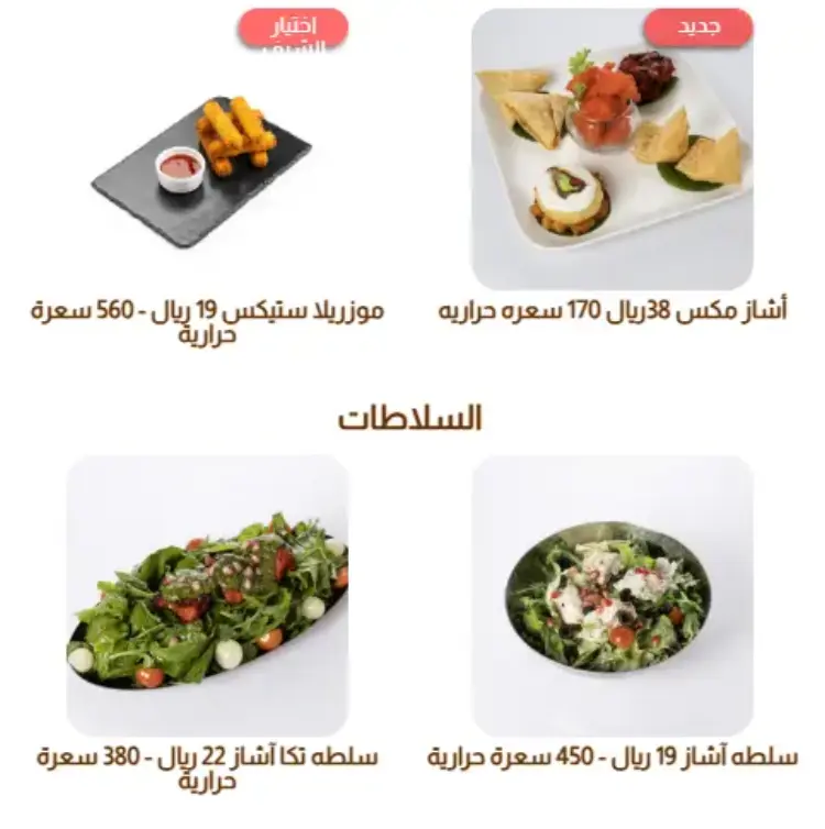 طبق أشاز مكس يحتوي على 170 سعره حرارية بسعر 38 ريال.