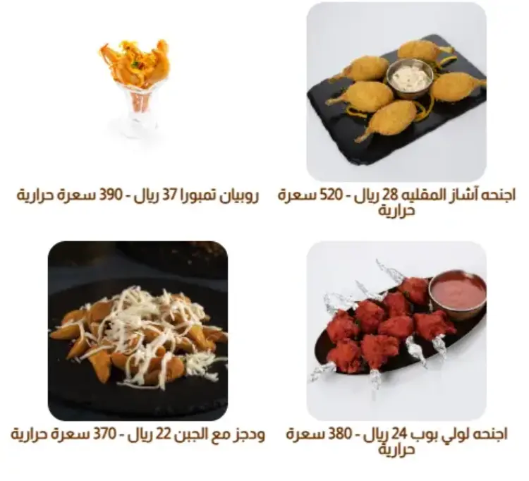 طبق اجنحه لولي بوب يحتوي على 380 سعرة حرارية بسعر 24 ريال.