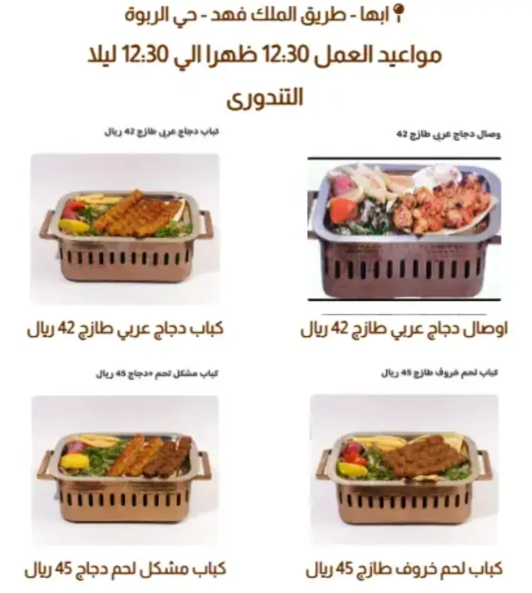 طبق كباب اللحم و الدجاج يحتوي على 1070 سعرة حرارية بسعر 44 ريال.