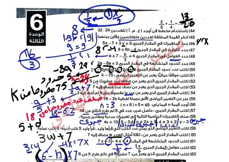 لمتابعة باقي أسئلة حل الأداء الصفي وواجب وتقييم الأسبوع السادس رياضيات للصف السادس الابتدائي ترم أول 2026 بالإضافة إلى أسئلة الشهر الأول بالكامل، يمكنك الإطلاع على الصور التالية: