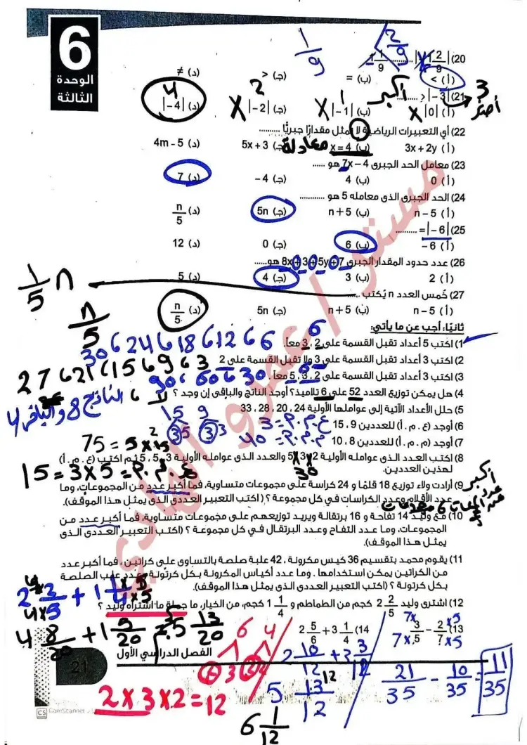 يشمل حل الواجب المنزلي رياضيات للصف السادس الابتدائي الأسبوع السادس ترم أول 2026 على الأسئلة والإجابات التي يوفرها المدرسون في صور واضحة من كتاب الأداءات والتقييمات، ومنها كان الآتي: