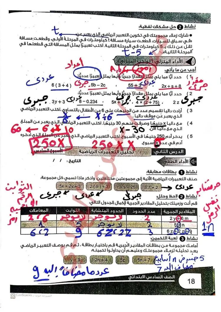 حل الأداء الصفي رياضيات للصف السادس الابتدائي الأسبوع السادس ترم أول 2026