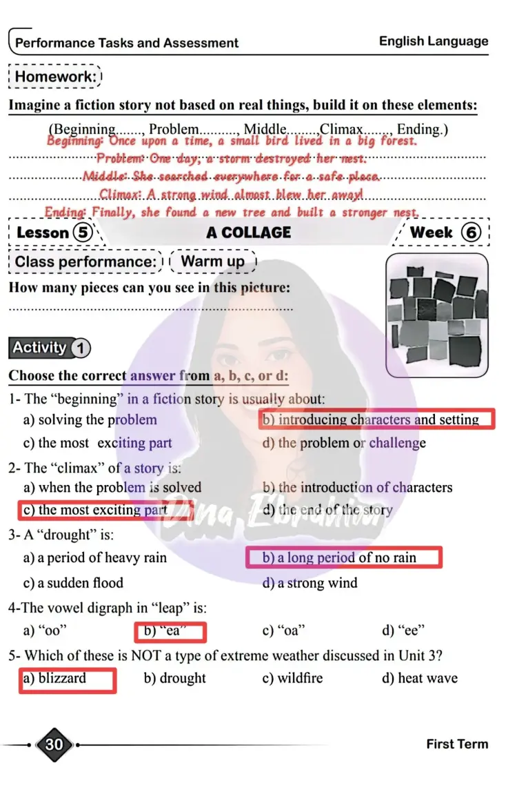 لمتابعة باقي أسئلة وحل الأداء الصفي وواجب وتقييم الأسبوع السادس إنجليزي للصف الخامس الابتدائي ترم أول 2026 يمكنك الإطلاع على الصور التالية: