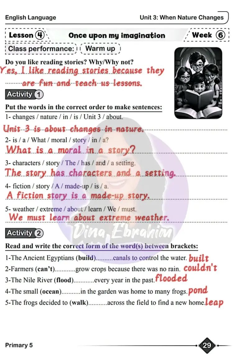 حل الأداء الصفي إنجليزي خامسة ابتدائي الأسبوع السادس ترم أول 2026