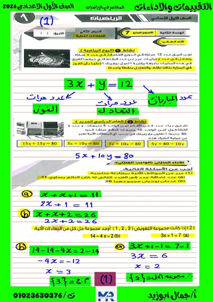 حرص الكثير من المعلمين والمعلمات لمادة الرياضيات على حل أداءات وواجبات وتقييمات الأسبوع السابع للصف الأول الإعدادي، وتوفيره للطلاب تيسيرا عليهم وليتعرفوا على الإجابات الصحيحة.