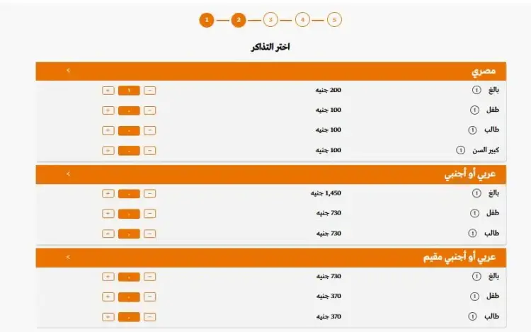 ثانيا: قم باختيار هوية الزائر «مصري - عربي أو أجنبي - عربي أو أجنبي مقيم»، والفئة التابع لها «بالغ - طالب - طفل - كبير السن».