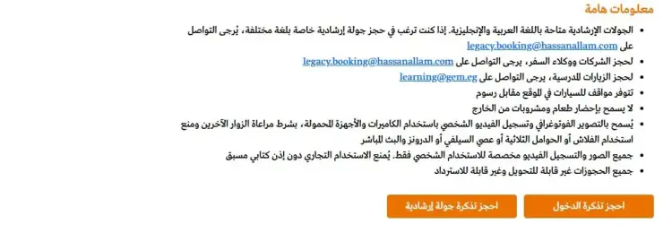 أعلن المتحف عن مجموعة من المعلومات الهامة التي يجب على الزوار معرفتها قبل إتمام الحجز: