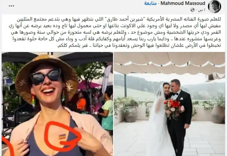 أثارت الفنانة المصرية الأمريكية شرين أحمد طارق جدلا واسعا عبر مواقع التواصل الاجتماعي خلال الساعات الأخيرة، بعد تداول صورة نسبت إليها زعم أنها تظهرها وهي تعلن دعمها لمجتمع المثليين، بالتزامن مع مشاركتها في افتتاح المتحف المصري الكبير.