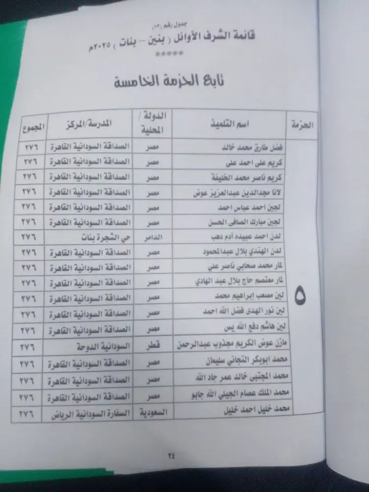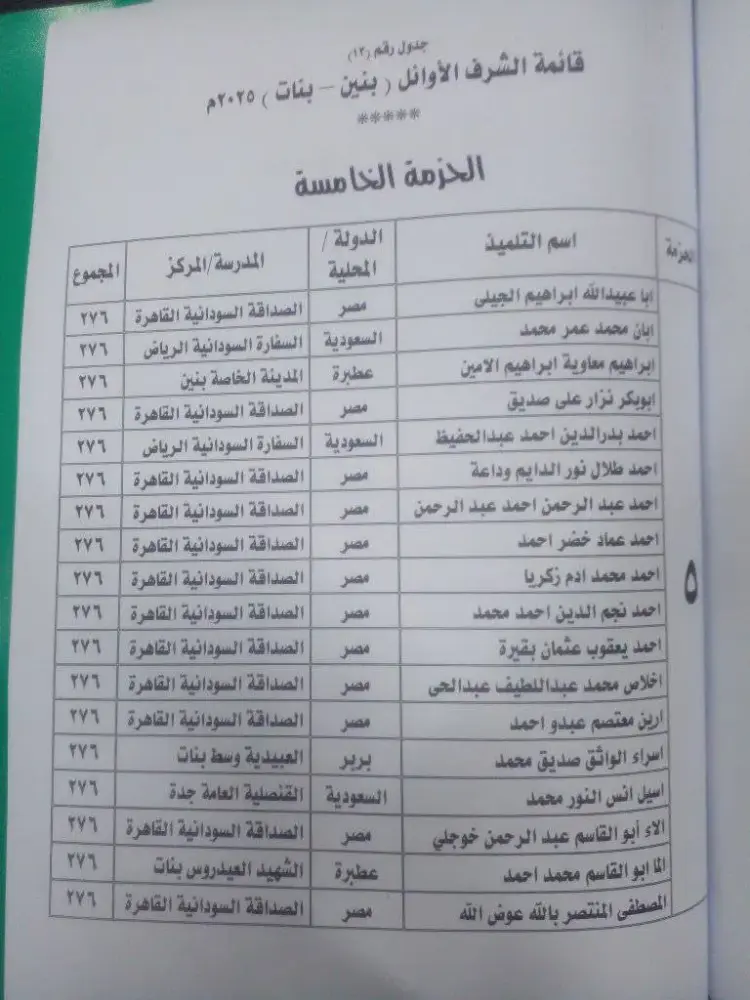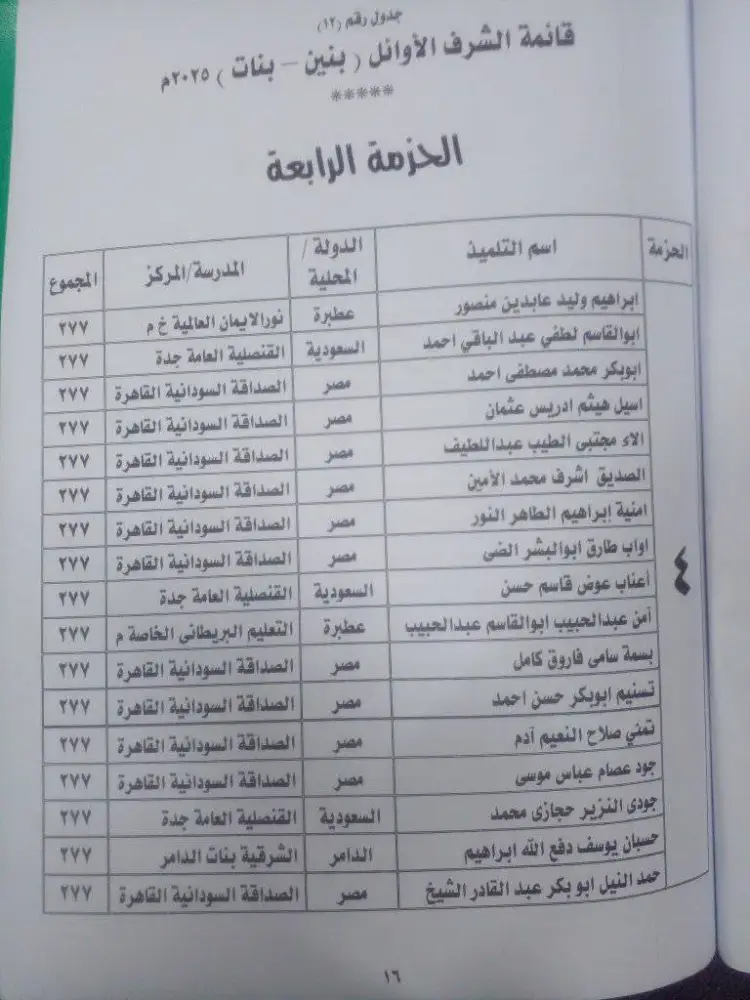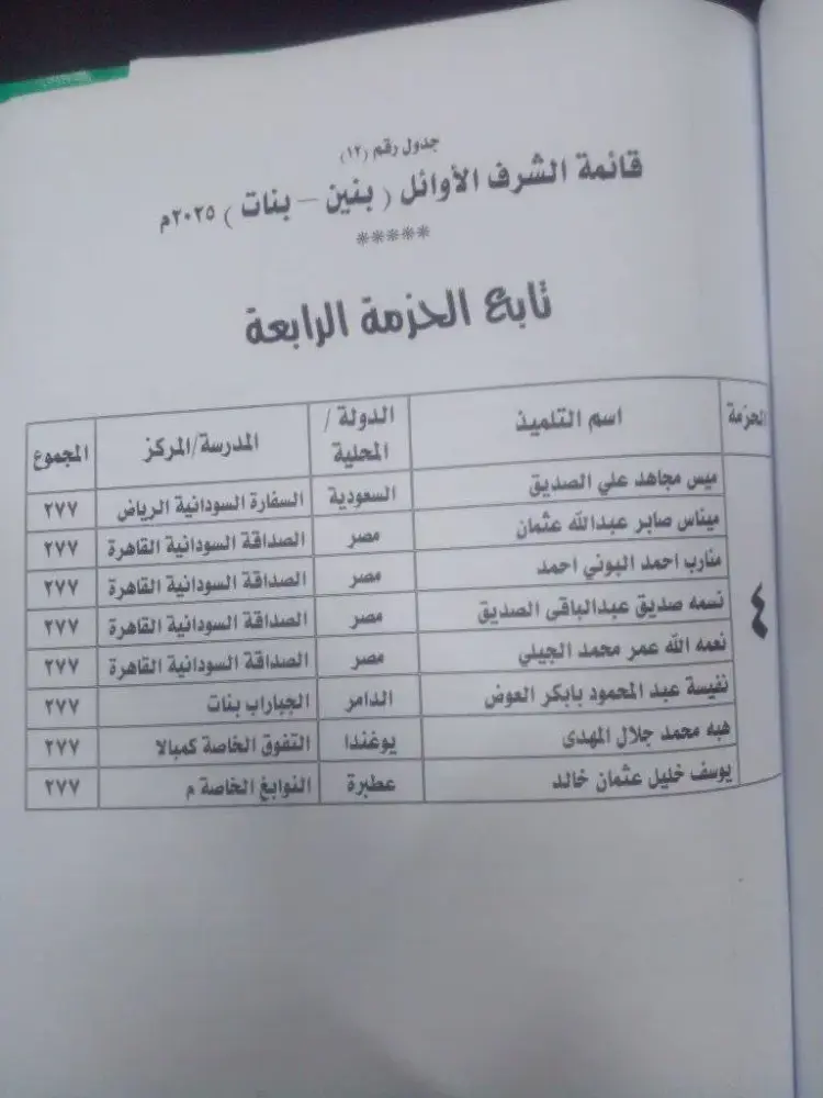 أوائل الصف السادس الابتدائي السودان 2025