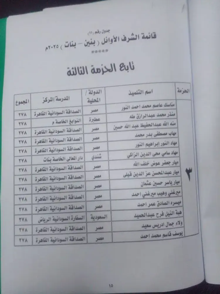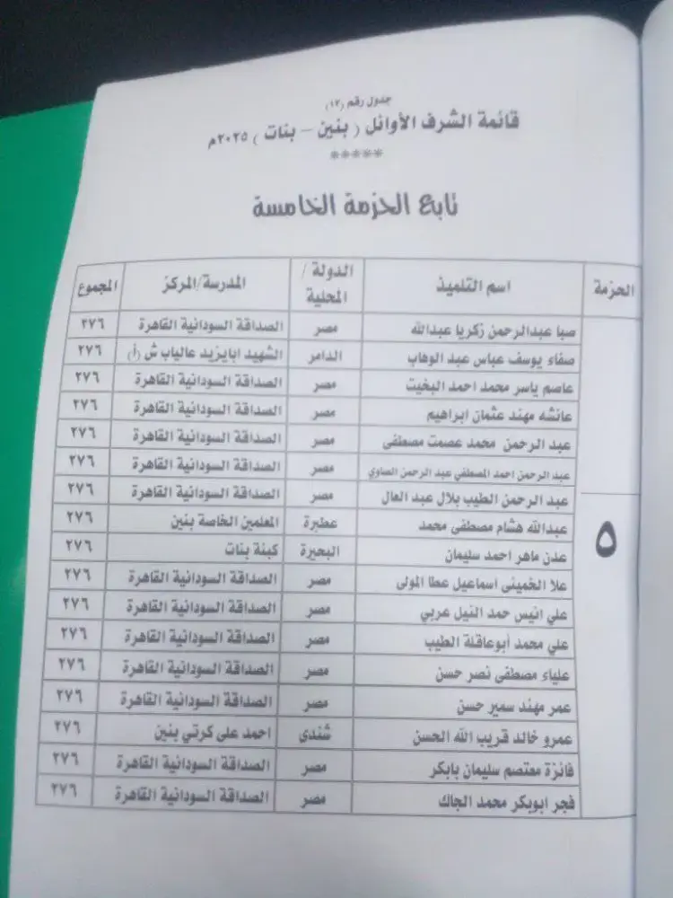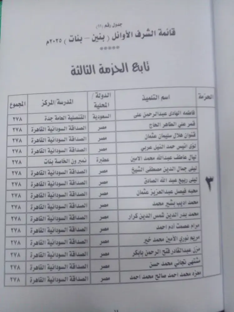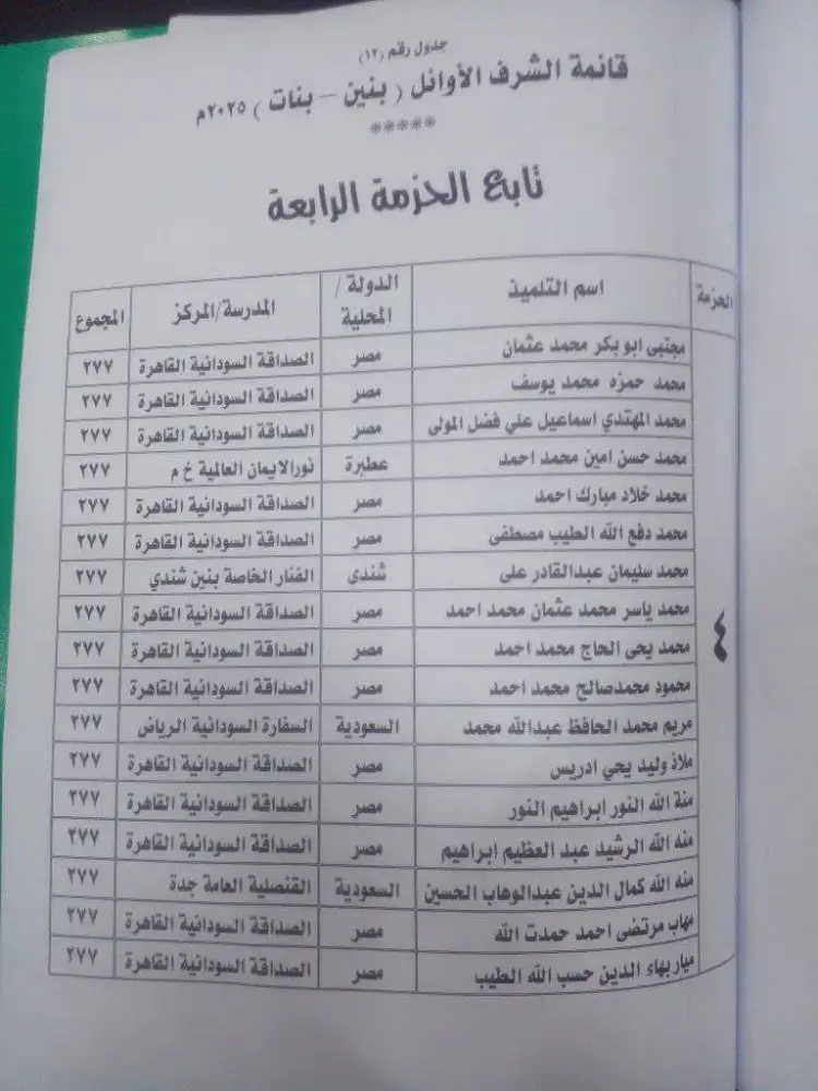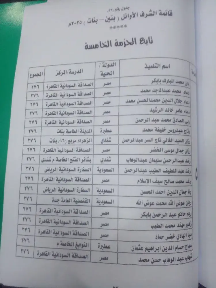 أوائل الصف السادس الابتدائي السودان 2025