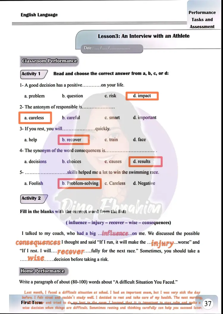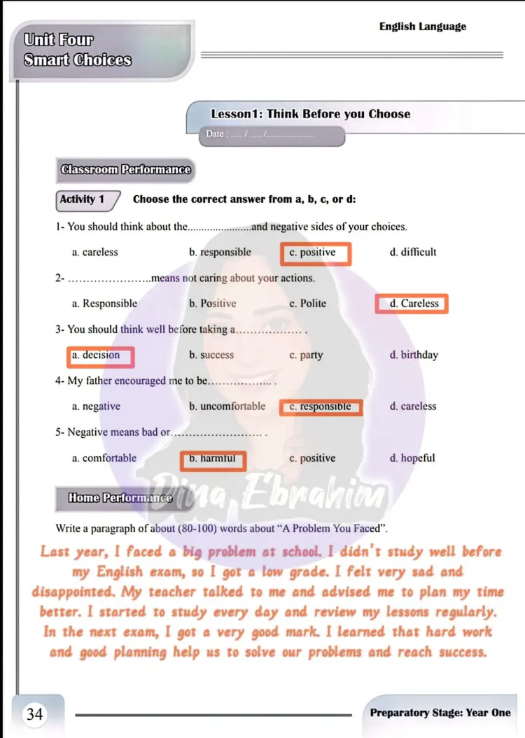 حل الأداء الصفي وواجب وتقييم الوحدة الثالثة إنجليزي للصف الأول الإعدادي ترم أول 2026