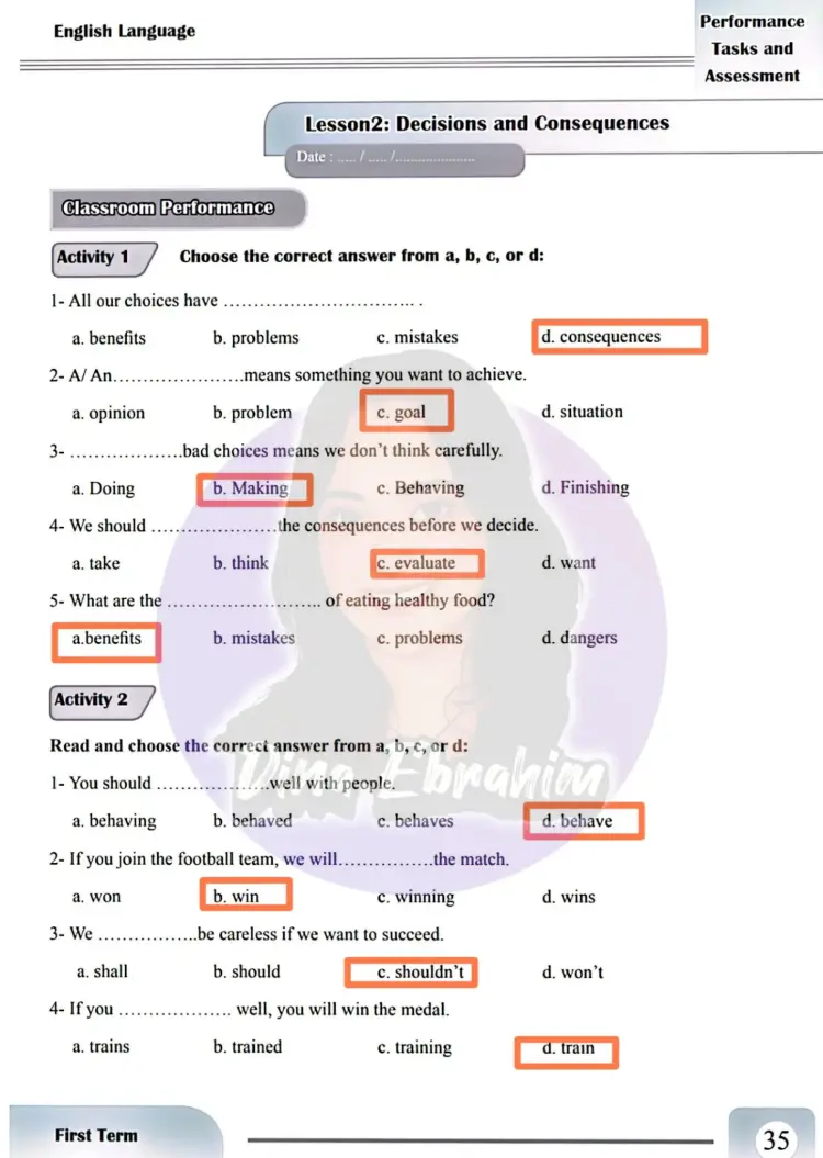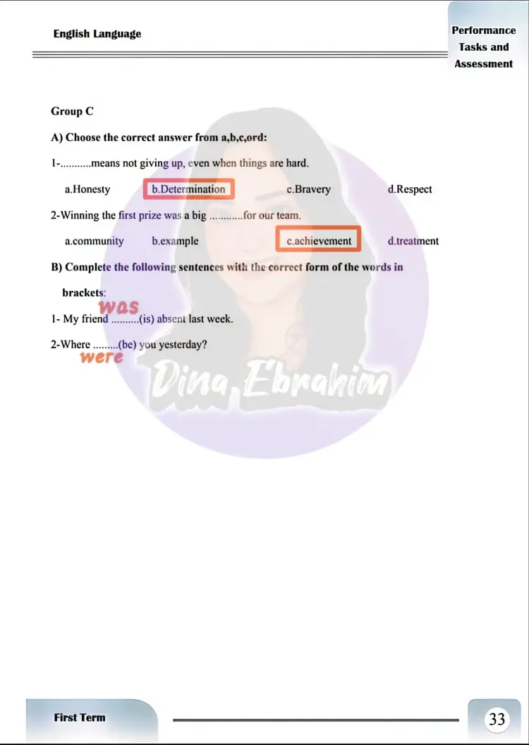 حل الأداء الصفي إنجليزي أولى إعدادي الأسبوع السادس والسابع ترم أول 2026