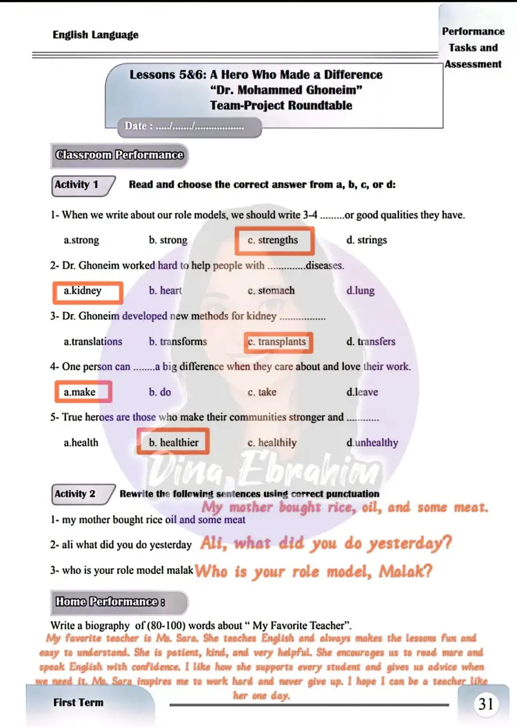 يشمل حل الأداء الصفي إنجليزي أولى إعدادي الأسبوع السادس والسابع ترم أول 2026 عدد كبير من الأسئلة، وكانت الأسئلة والإجابات كالتالي: