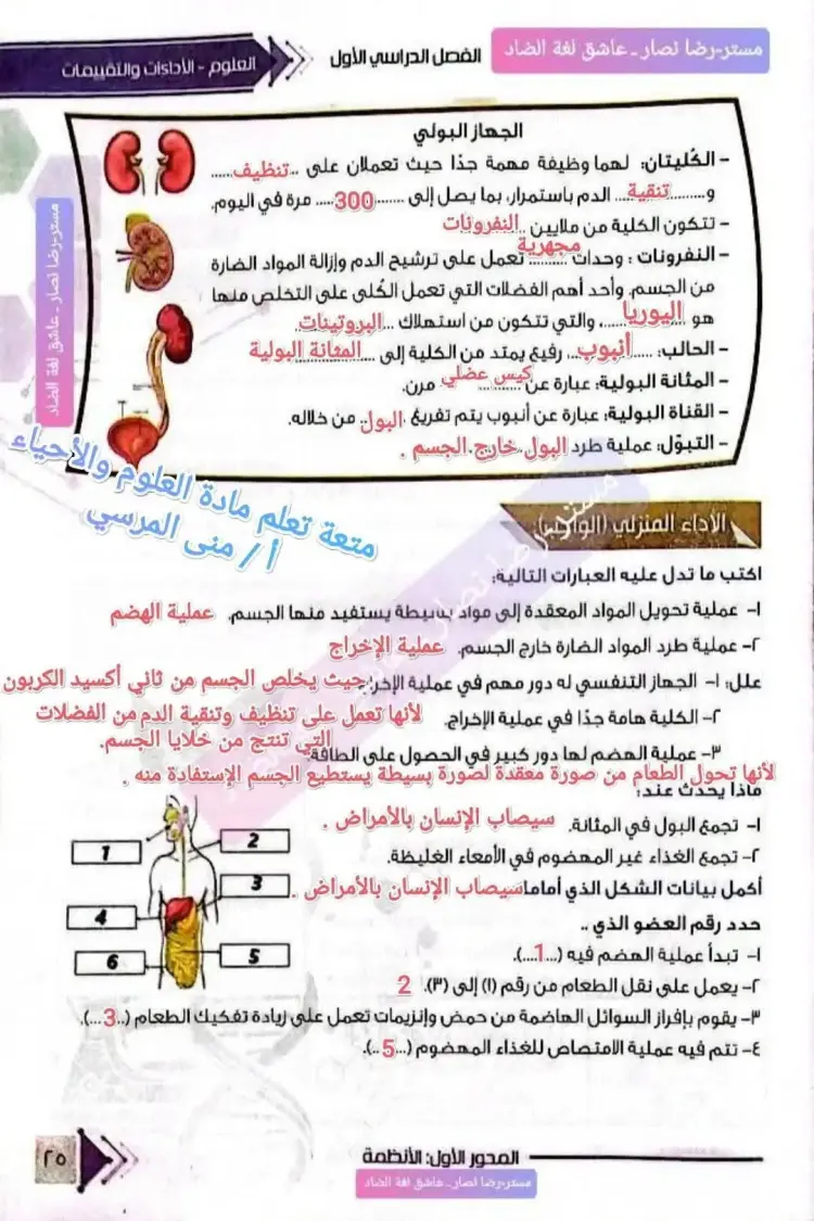 يشمل الأسئلة وحل الواجب المنزلي علوم سادسة ابتدائي الأسبوع السادس ترم أول 2026 على عدد كبير من الأسئلة والإجابات، ومنها الآتي: