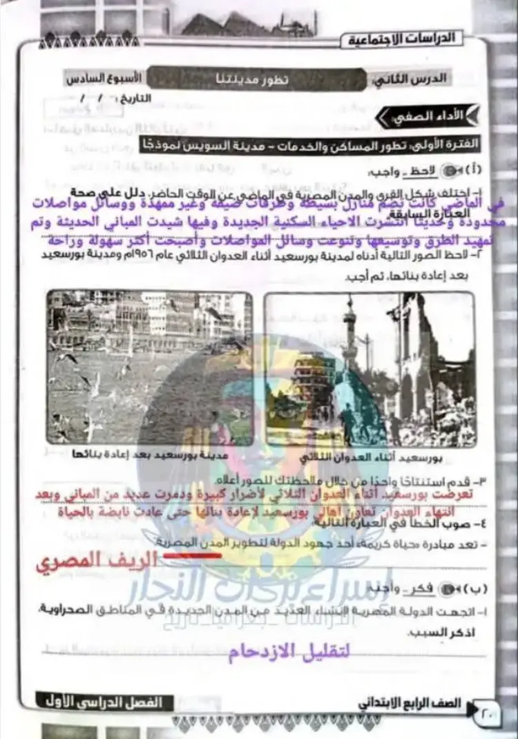 حل الأداء الصفي والواجب المنزلي والتقييم الأسبوعي السادس دراسات للصف الرابع الابتدائي 2026