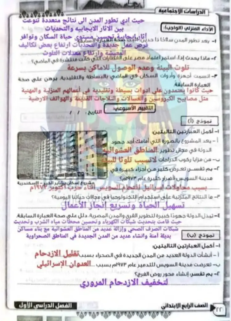 فقد أعدت وزارة التربية والتعليم والتعليم الفني، كتاب الأداءات والتقييمات الأسبوعية في الدراسات الاجتماعية للمرحلة الابتدائية، وفقًا لتوجيهات وزير التربية والتعليم محمد عبد اللطيف.