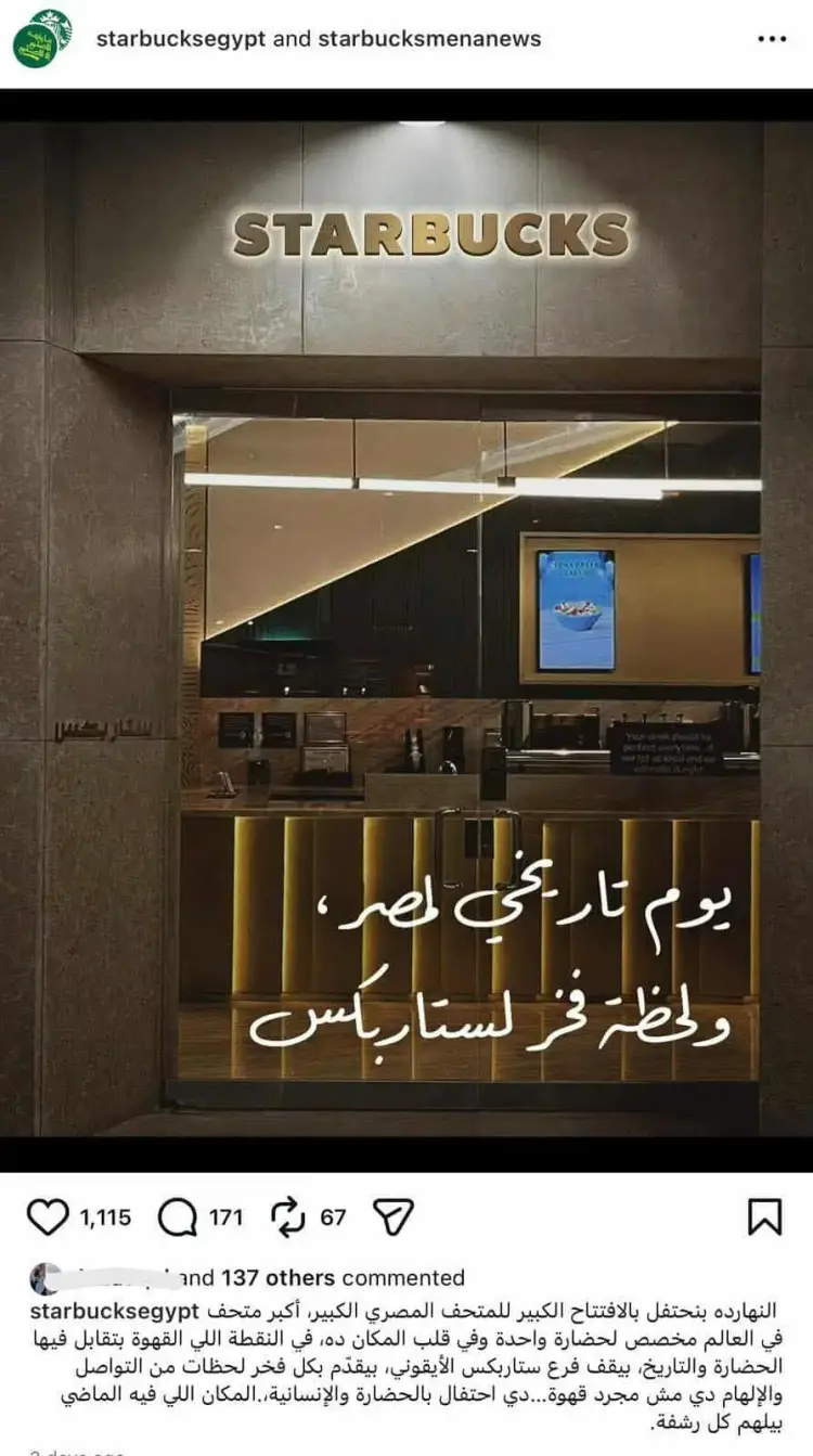 ستاربكس يفتتح فرعا جديدا في المتحف المصري الكبير مستوحي من تراث مصر