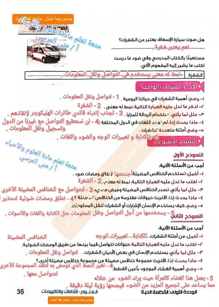 5. كيف يستخدم الإنسان الإشارات أو الشفرات لنقل المعلومات؟