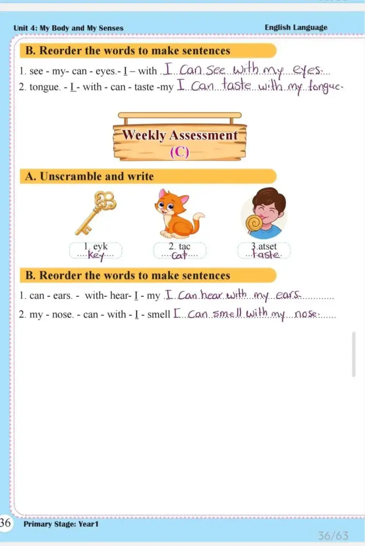 لمتابعة باقي الأسئلة والإجابات في حل تقييمات الوحدة الرابعة إنجليزي للصف الأول الابتدائي ترم أول 2026 يمكنك الإطلاع على الصور التالية: