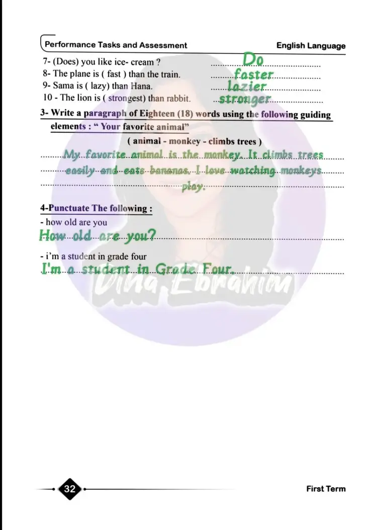 لمتابعة باقي الأسئلة والإجابات المتاحة في حل الأداء الصفي وواجب وتقييم الأسبوع السابع إنجليزي للصف الرابع الابتدائي ترم أول 2026 يمكنك الإطلاع على الصور التالية: