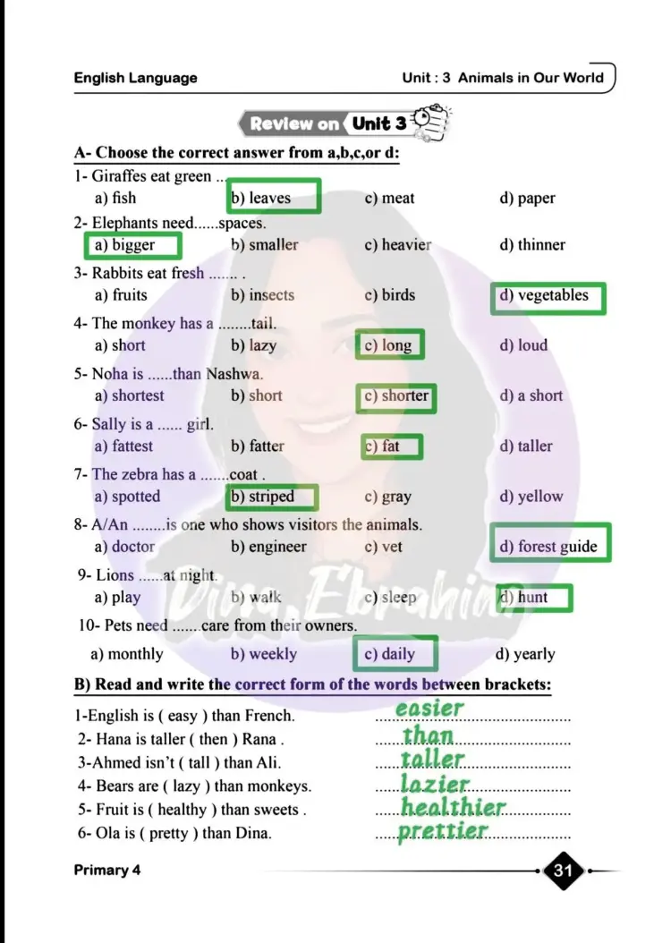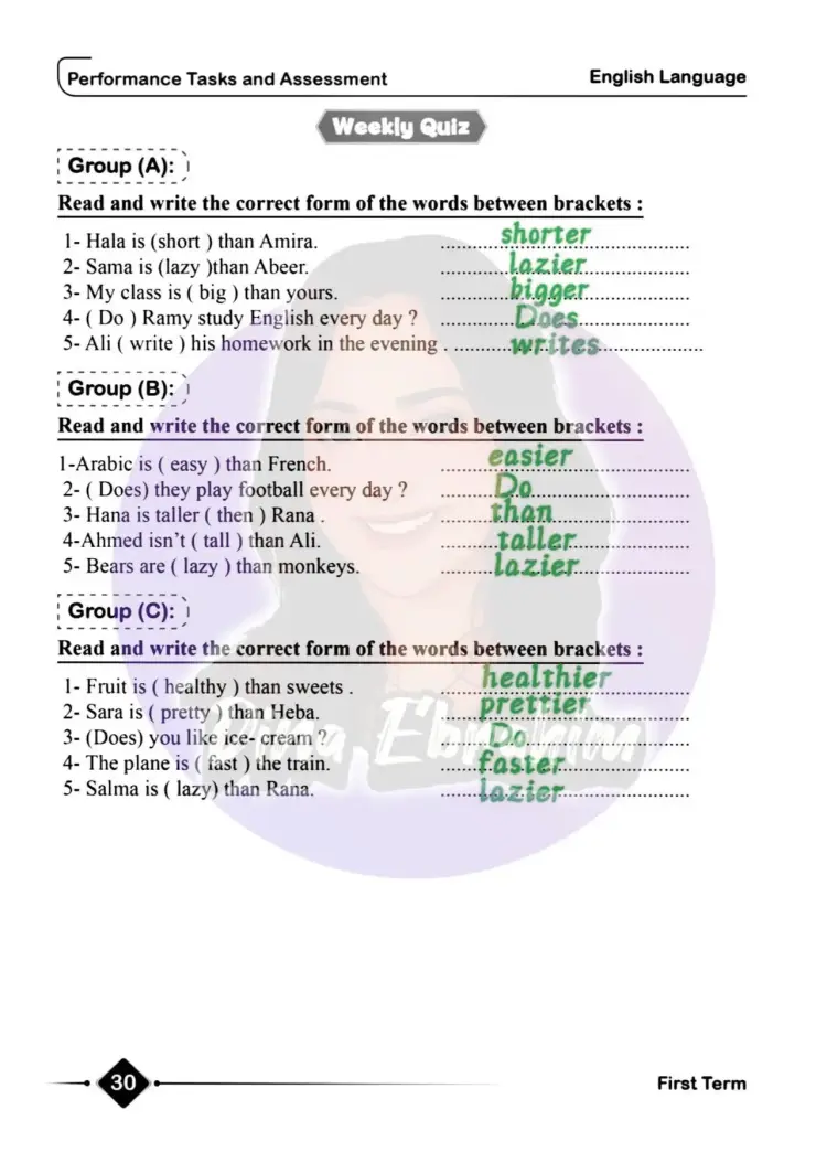 سؤال: Read and write the correct form of the words: Bears are ( lazy ) than monkeys.