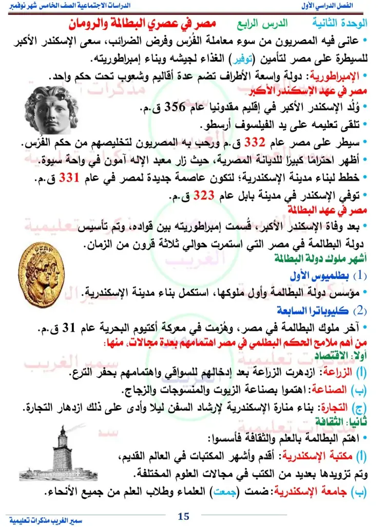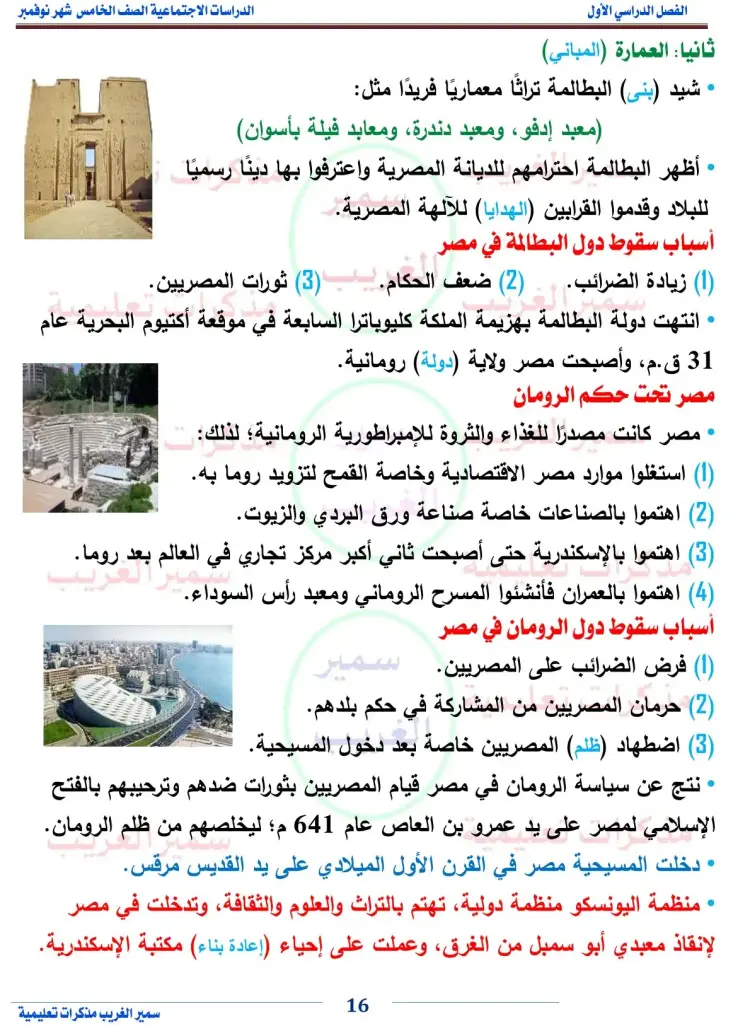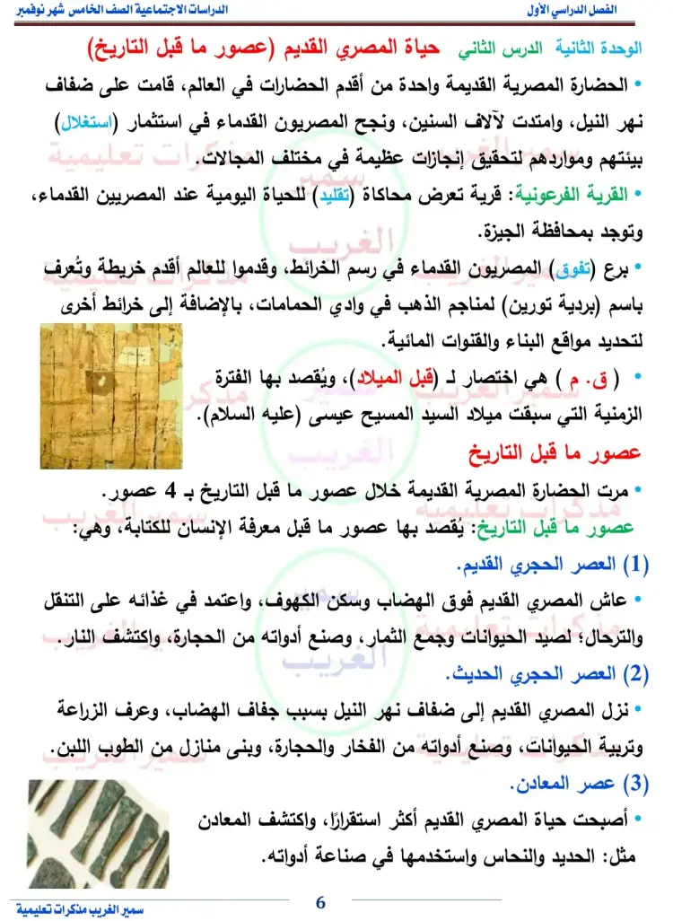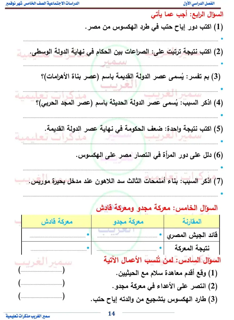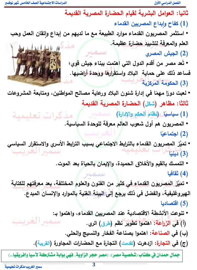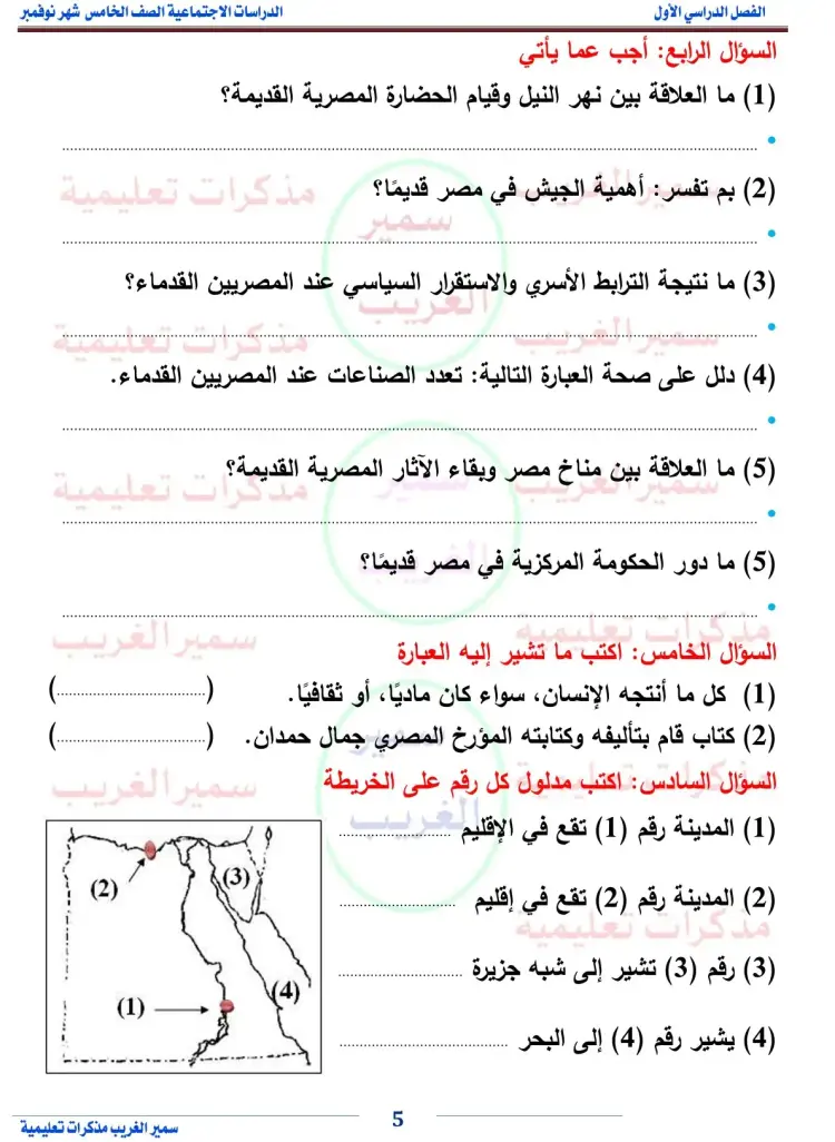 مراجعة شهر نوفمبر دراسات للصف الخامس الابتدائي الترم الأول 2025 2026