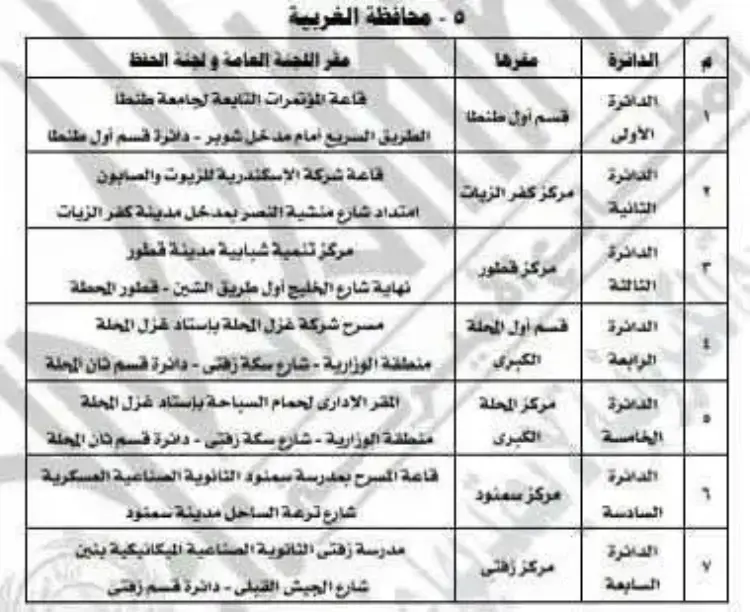 أماكن لجان انتخابات مجلس النواب في الغربية 2025