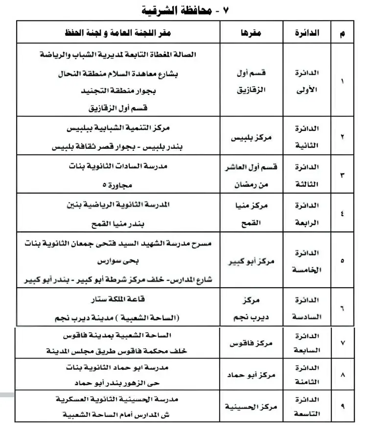 أماكن لجان انتخابات مجلس النواب بالشرقية 2025