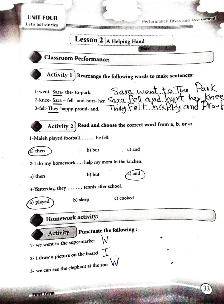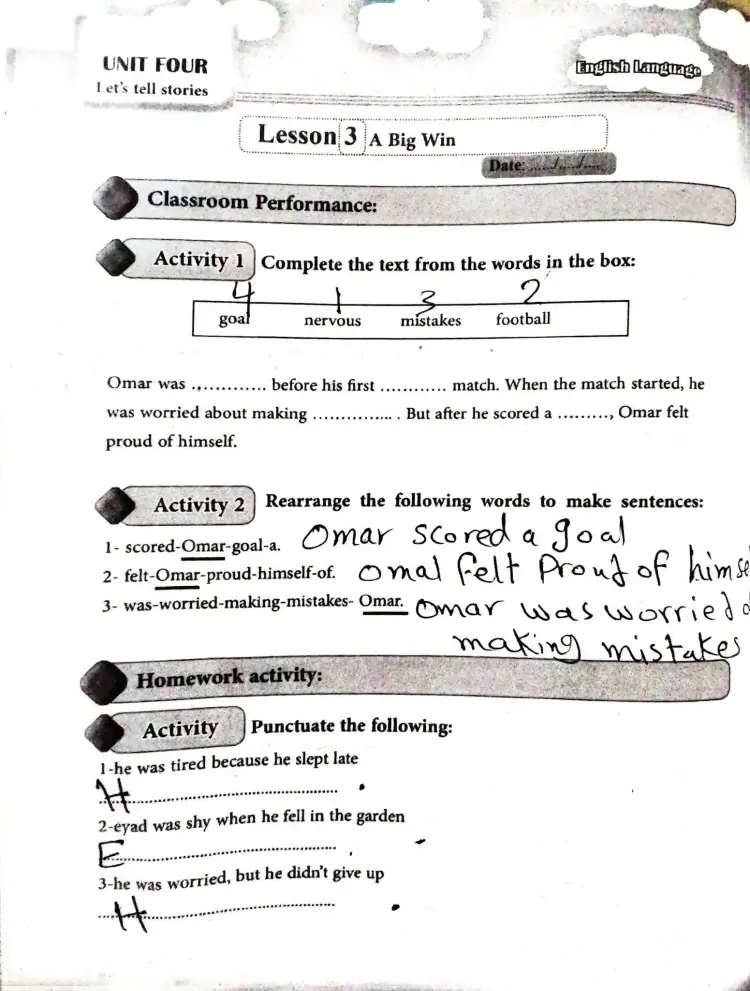 • Answer: Omar scored a goal. (From Lesson 3, Activity 2)