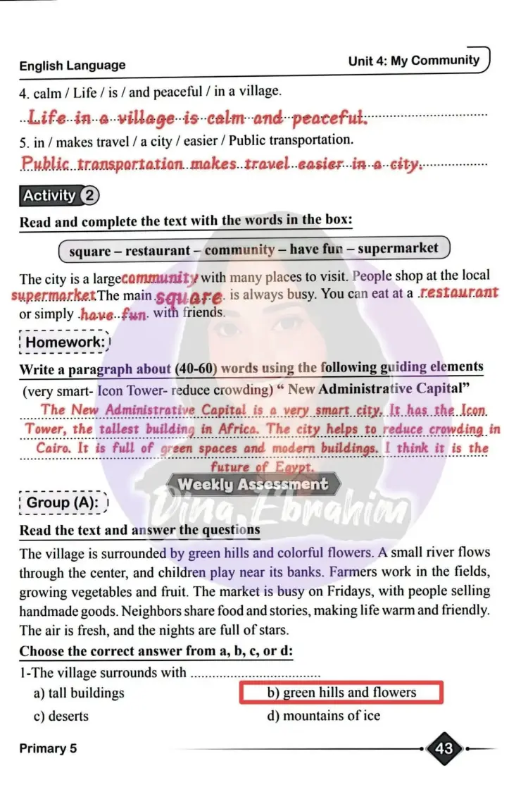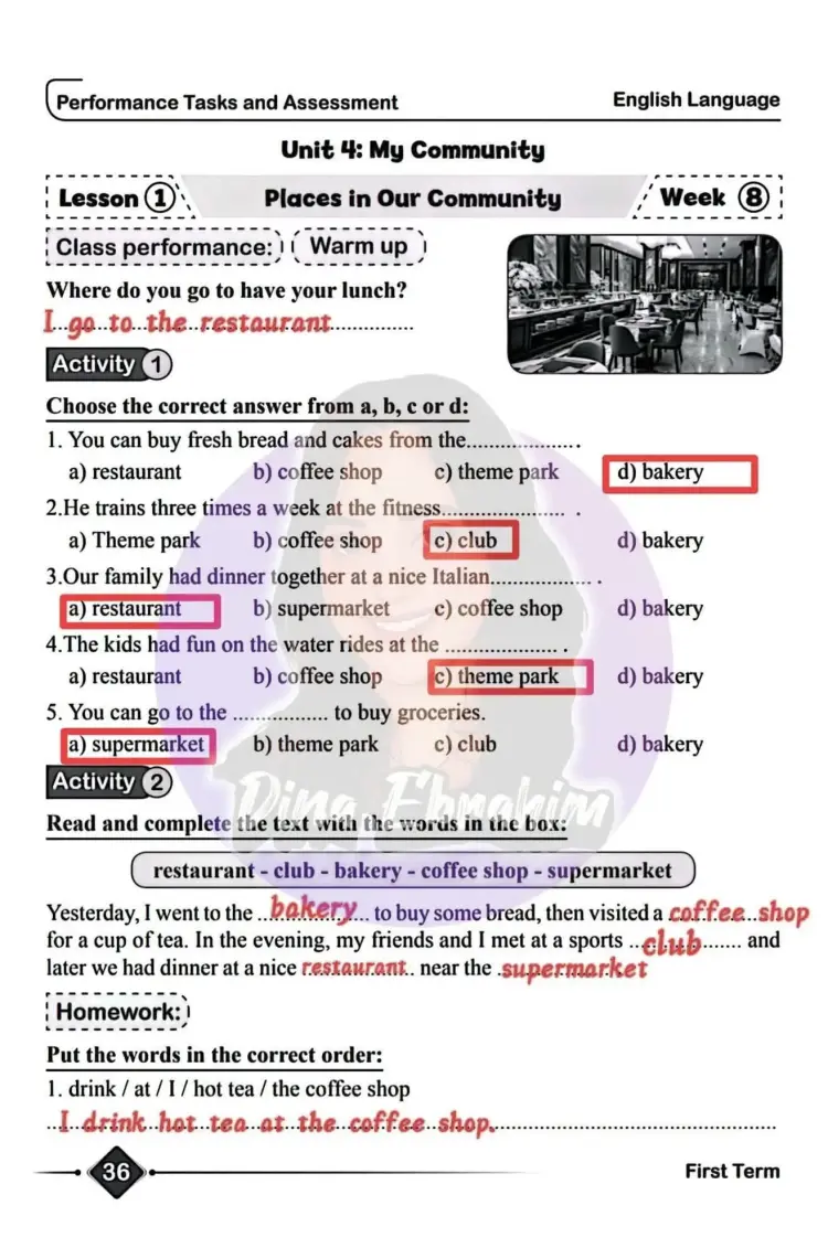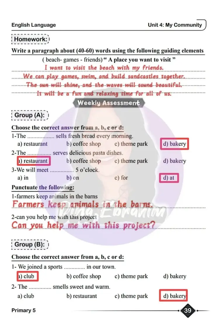 حل الأداء الصفي والواجب المنزلي والتقييم الأسبوعي الثامن انجليزي للصف الخامس الابتدائي 2026