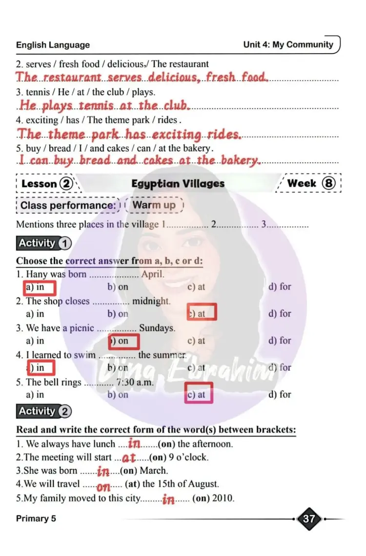 ينشر «شبابيك» حل الأداء الصفي والواجب المنزلي وتقييم الأسبوع الثامن في مادة اللغة الإنجليزية، لطلاب الصف الخامس الابتدائي، الفصل الدراسي الأول للعام 2025 2026.