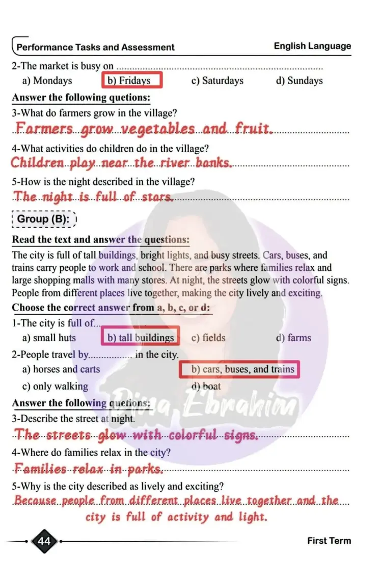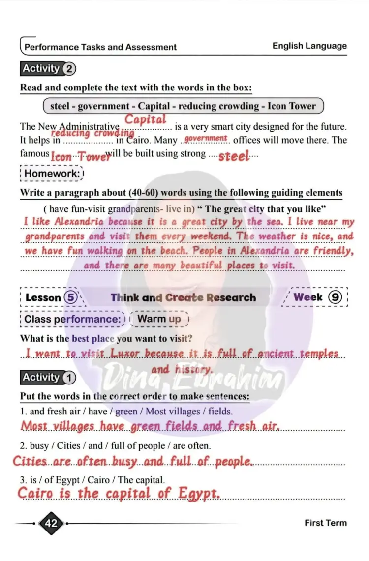 إجابات أداءات وتقييمات انجليزي خامسة ابتدائي الأسبوع الثامن