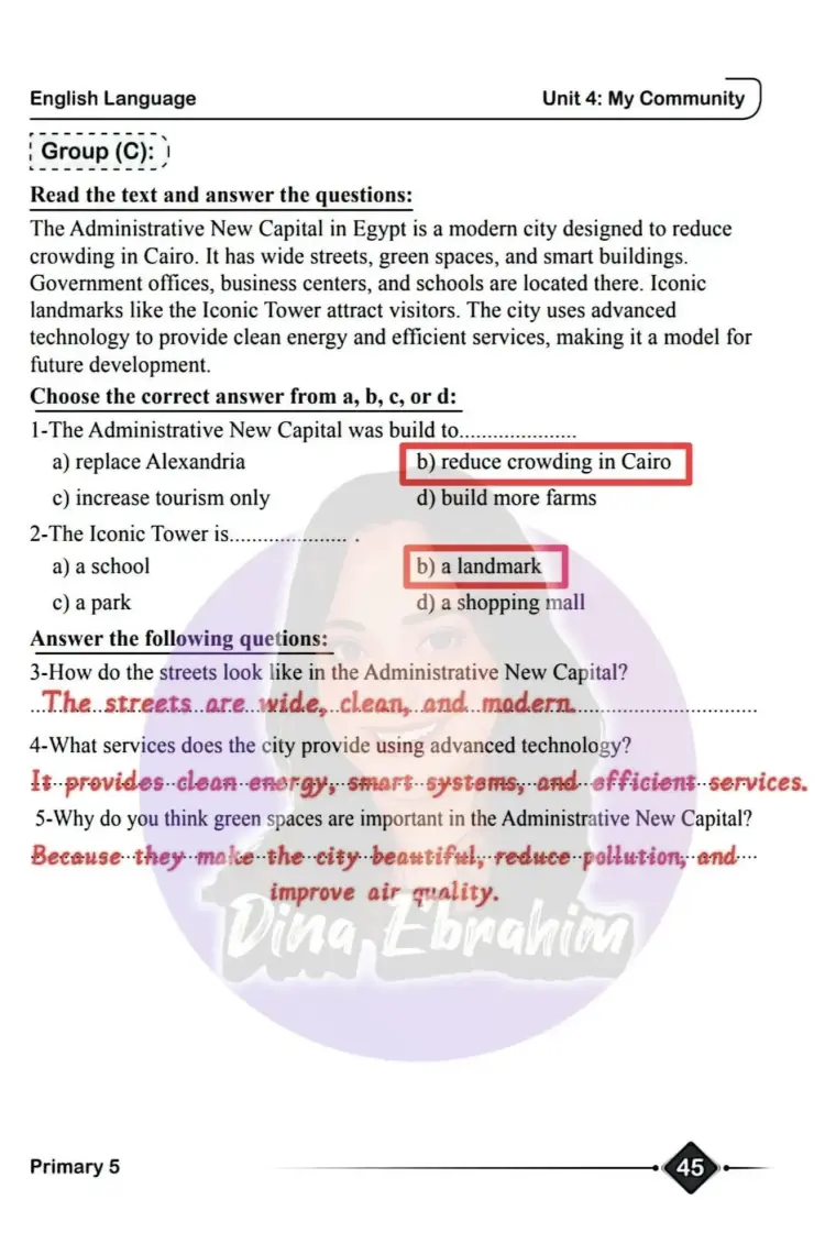 وجاءت الأسئلة مرفق بها الإجابات كما يلي: