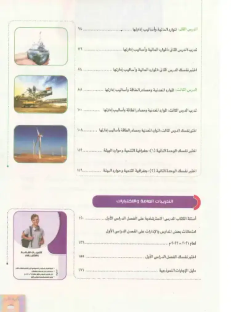 الدرس الثالث: الموارد المعدنية ومصادر الطاقة وأساليب إدارتها (ص ٨٨).