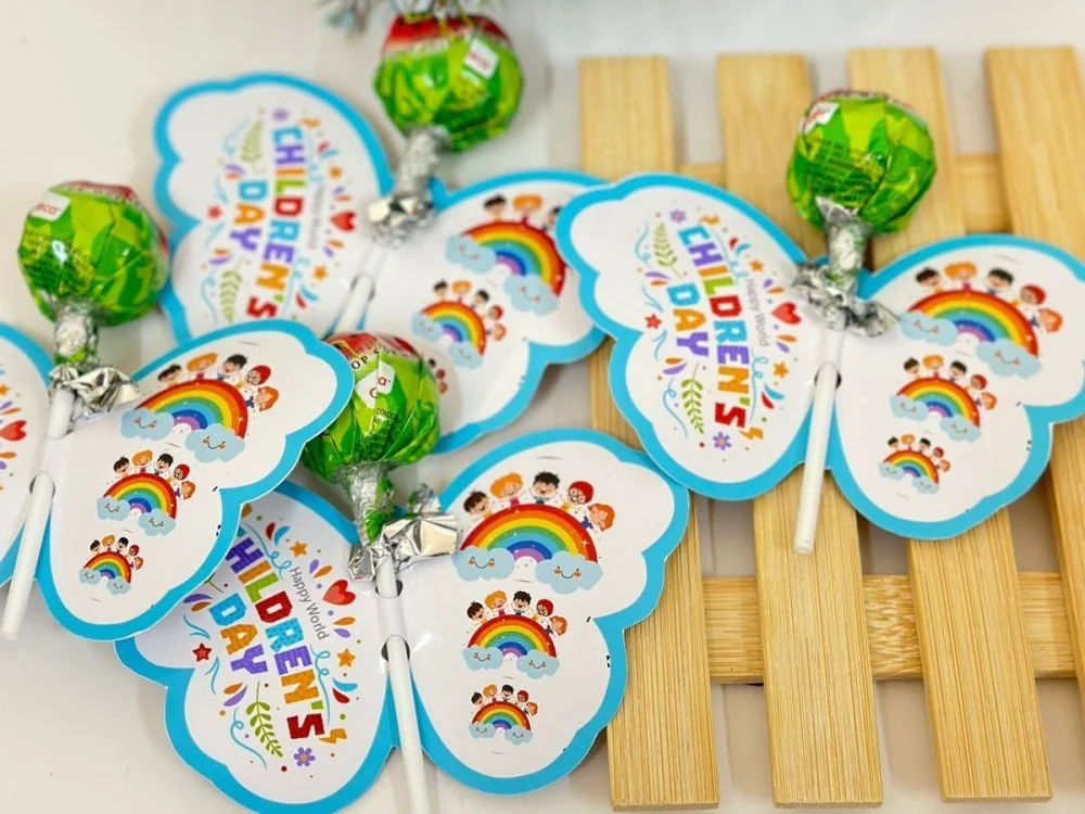 • بطاقات تشجيعية مع الحلوى: تستخدم بطاقات تحمل عبارات إيجابية موجهة للأطفال مثل: «أنت مميز»، «يومك سعيد»، تربط بقطعة حلوى أو شوكولاتة، وتوزع خلال الفعاليات المدرسية.