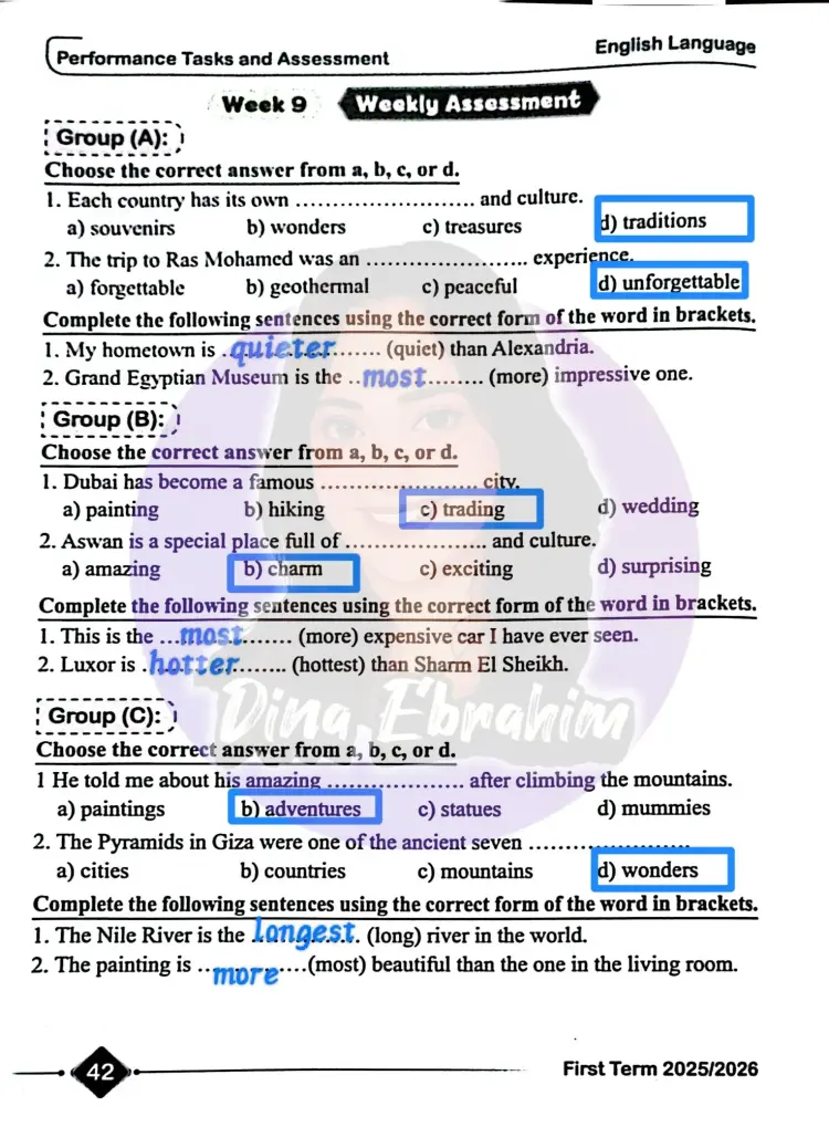 لمعرفة الإجابات لباقي الأسئلة يمكنك الإطلاع على صور حل الأداء الصفي وواجب وتقييم الأسبوع التاسع إنجليزي للصف الثاني الإعدادي ترم أول 2026 التالية: