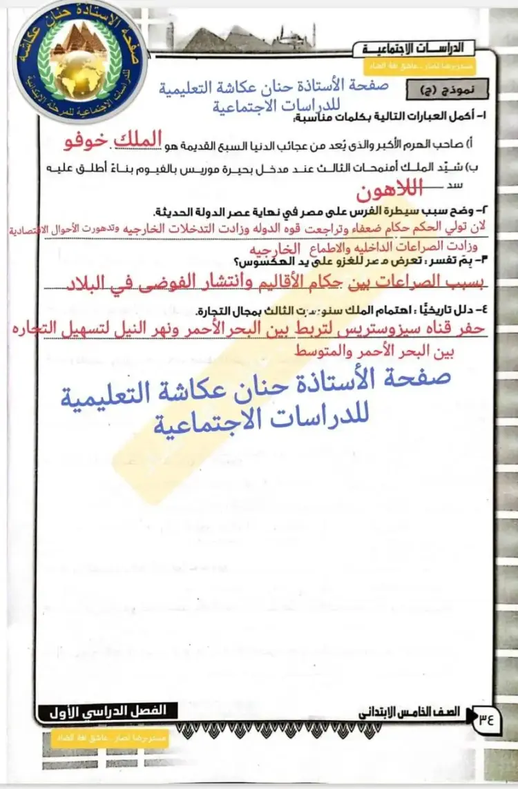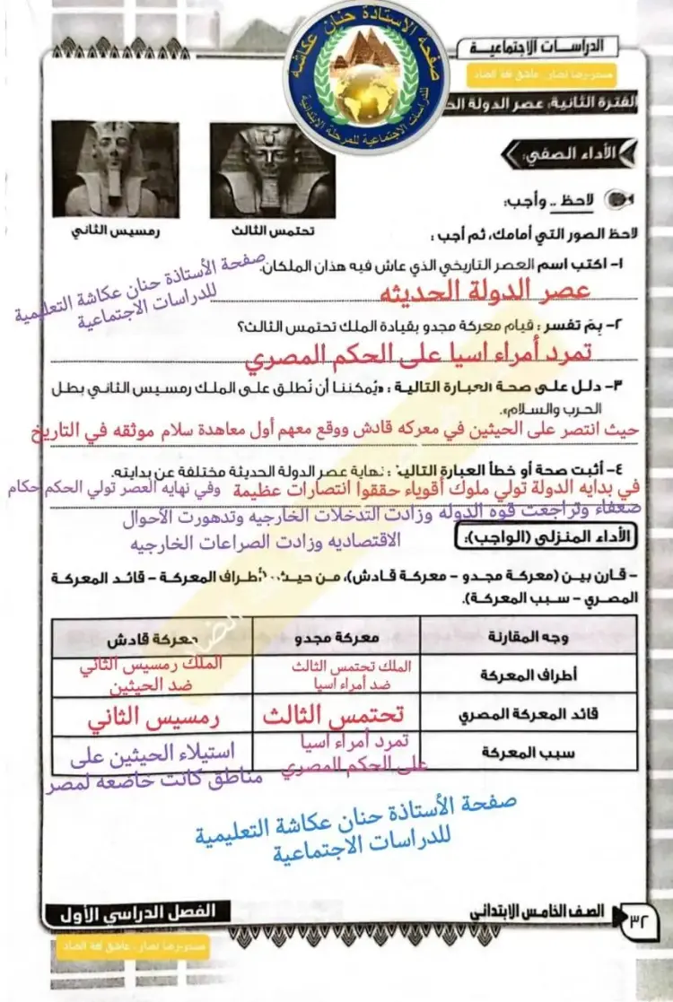 حرص الكثير من المعلمين والمعلمات لمادة الدراسات الاجتماعية على حل أداءات وواجبات وتقييمات الأسبوع التاسع للصف الخامس الابتدائي، وتوفيره للطلاب تيسيرا عليهم وليتعرفوا على الإجابات الصحيحة.