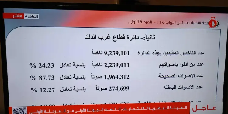 عكست الأرقام مشاركة محدودة مقارنة بعدد الناخبين المقيدين بالدوائر الانتخابية، ونسب الإقبال الضئيلة في دائرة قطاع غرب الدلتا.