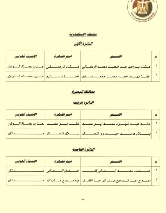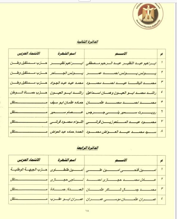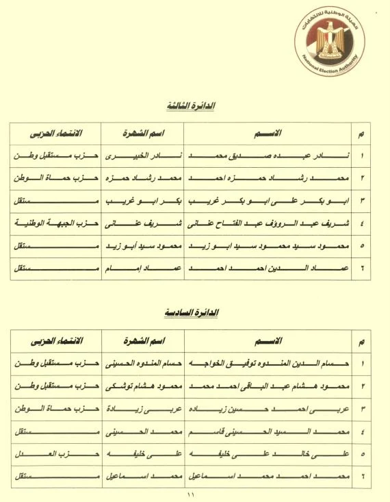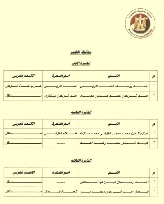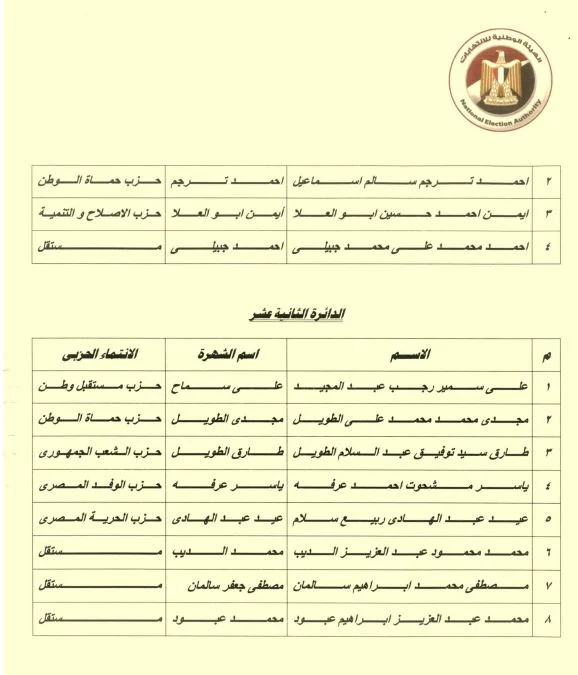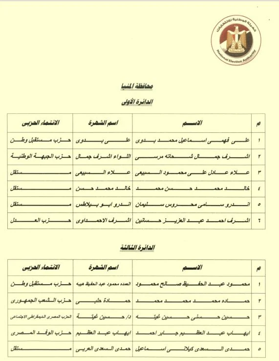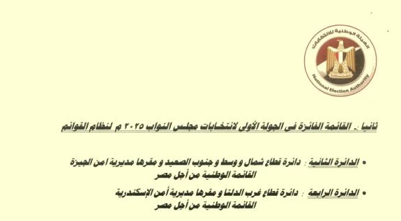 أسماء مرشحي مجلس النواب في جولة الإعادة 2025 للمرحلة الأولى