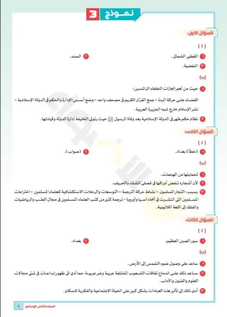 امتحانات كتاب الأضواء شهر نوفمبر دراسات للصف الثاني الإعدادي 2026 بالإجابات