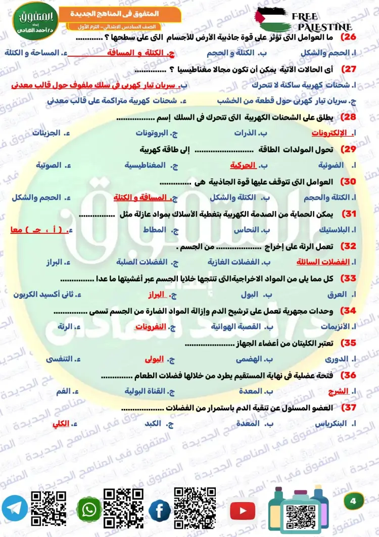 يمكنك التعرف على بقي أسئلة المتفوق علوم للصف السادس الابتدائي شهر نوفمبر 2025 على النحو الآتي.