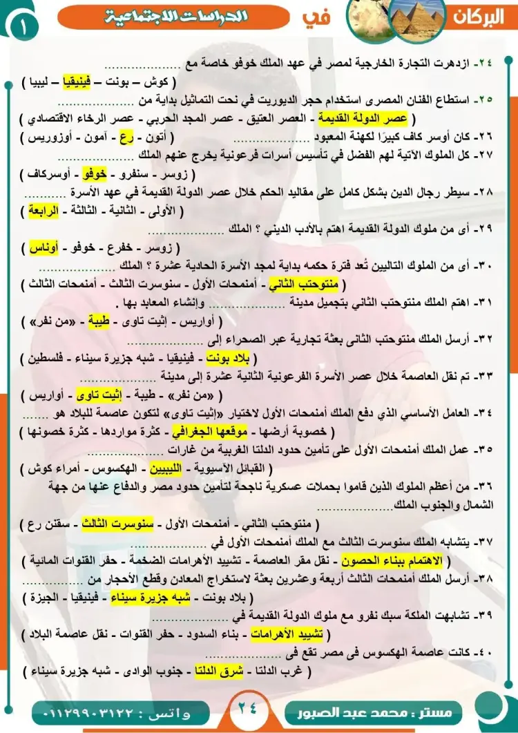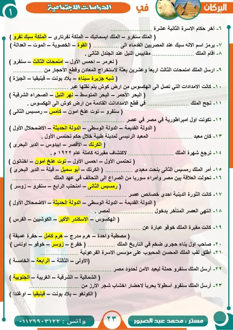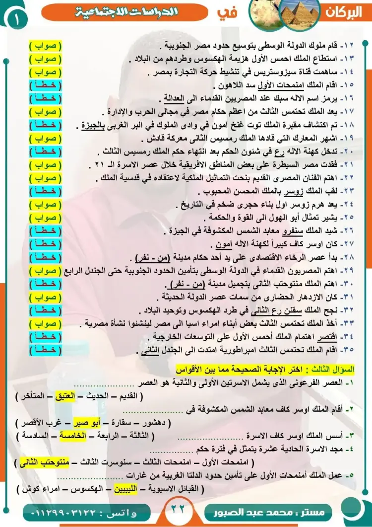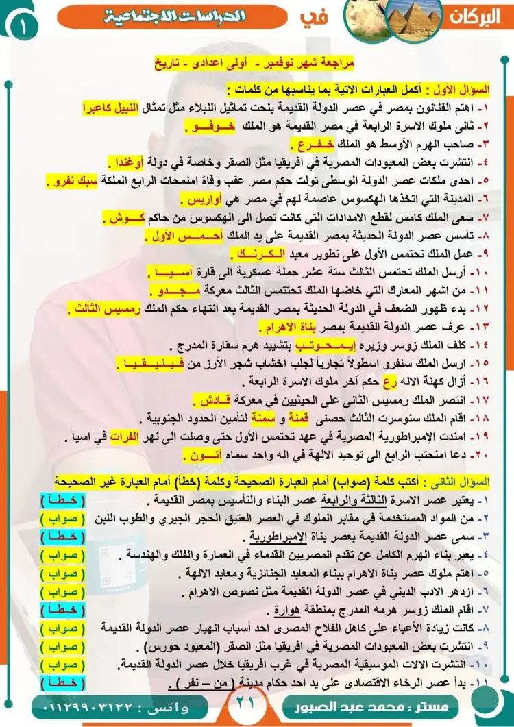مراجعة شهر نوفمبر دراسات للصف الأول الإعدادي 2025 سؤال وجواب