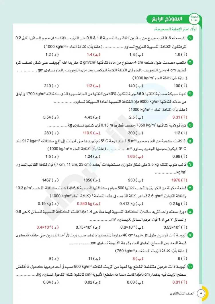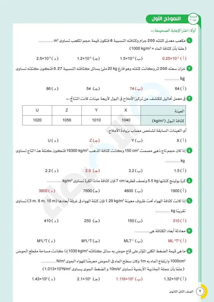 وتشمل نماذج امتحانات شهر نوفمبر في كتاب الأضواء الفيزياء لطلاب للصف الثاني الثانوي بالعام الدراسي 2025 2026، على العديد من نماذج الأسئلة منها: