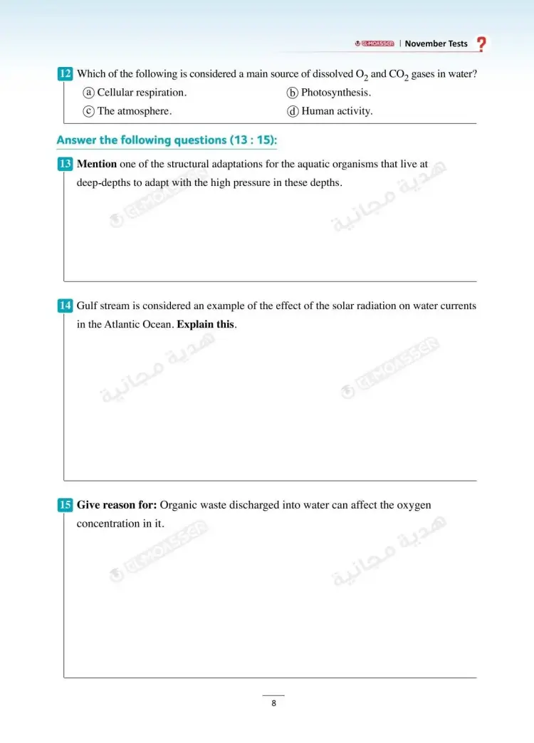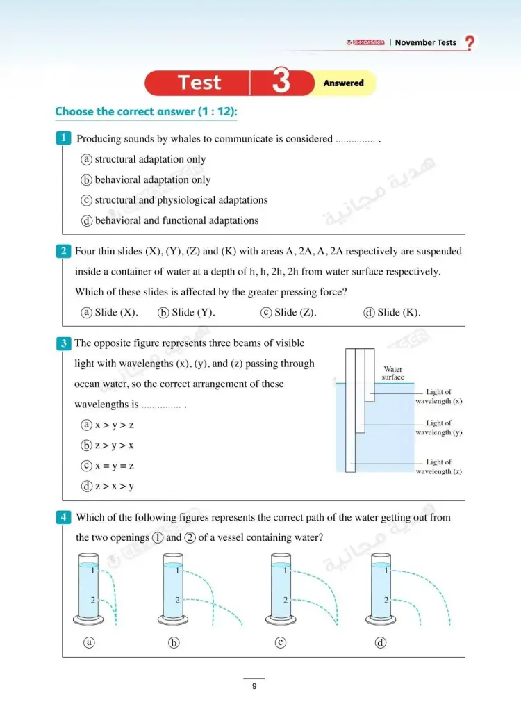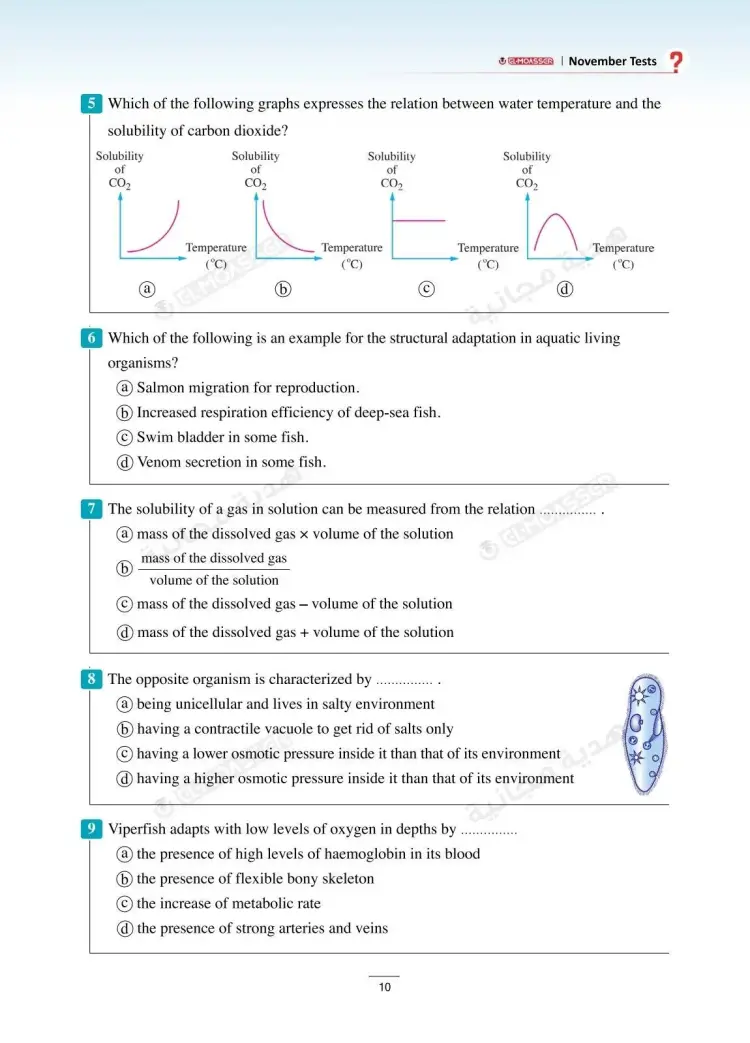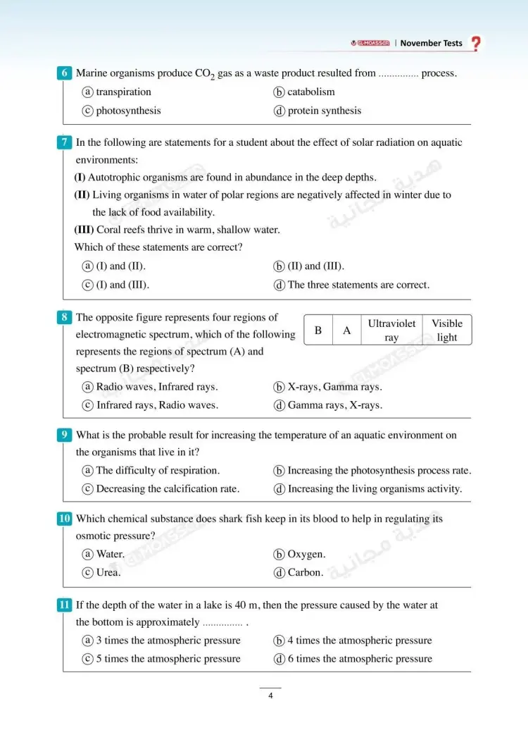 وتشمل نماذج امتحانات شهر نوفمبر في كتاب الأضواء Integrated sciences للصف الأول الثانوي لغات بالعام الدراسي 2025 2026، على العديد من نماذج الأسئلة منها: