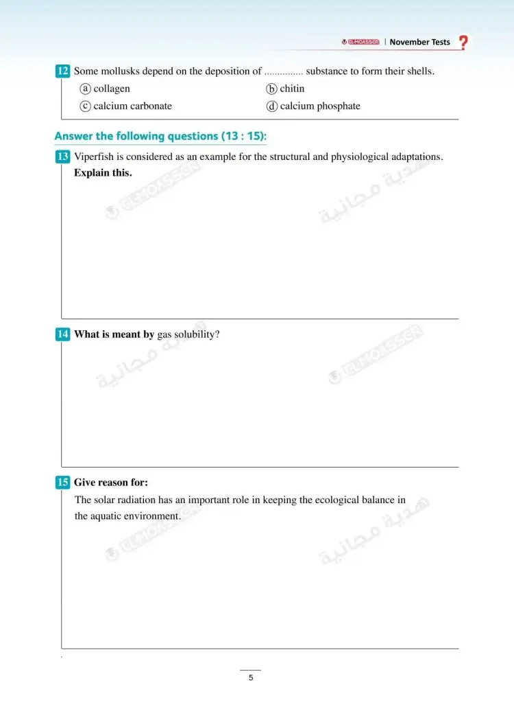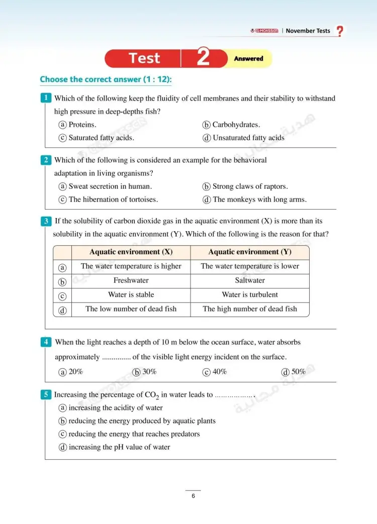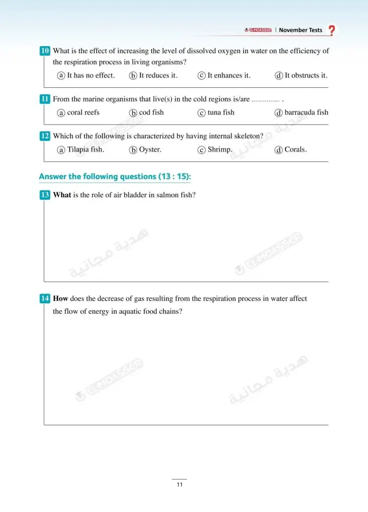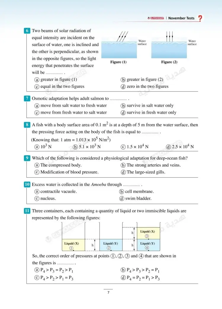 وتشمل نماذج امتحانات شهر نوفمبر في كتاب الأضواء Integrated sciences للصف الأول الثانوي لغات بالعام الدراسي 2025 2026، على العديد من نماذج الأسئلة منها: