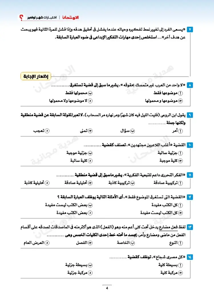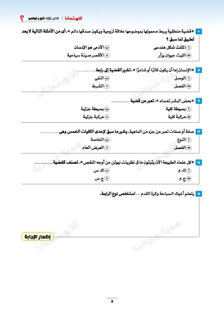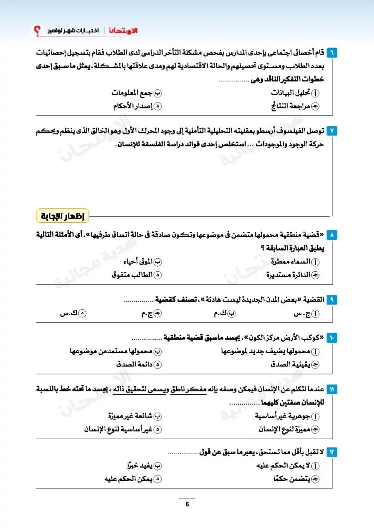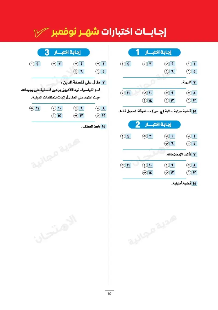اختبارات كتاب الامتحان فلسفة الصف الأول الثانوي شهر نوفمبر 2025