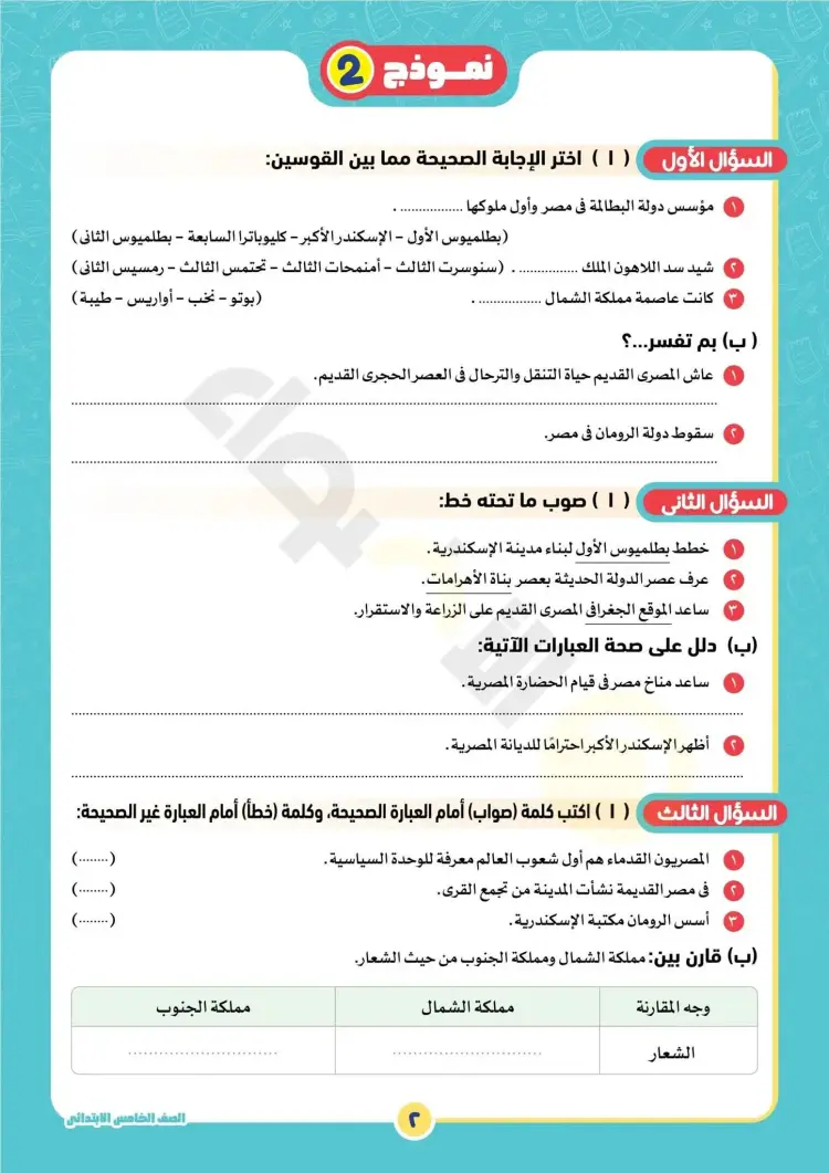 2. يُعرف عصر الدولة القديمة بعصر ..................................... (بناة الأهرامات)