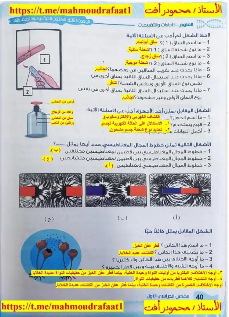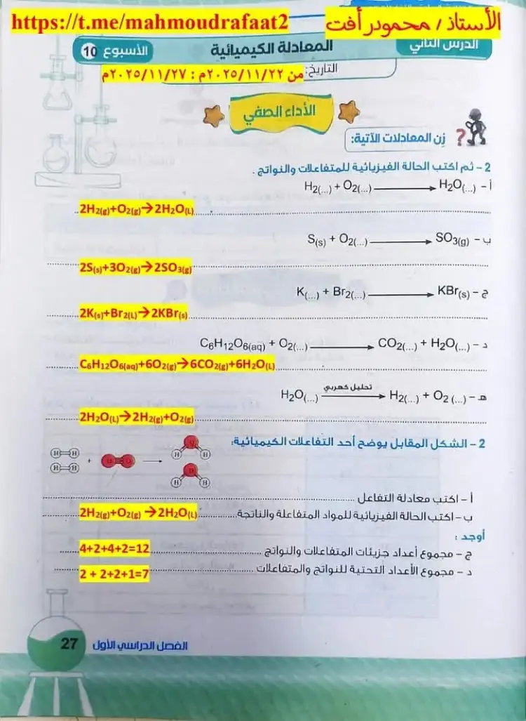 حل الأداء الصفي وواجب وتقييم الأسبوع العاشر علوم للصف الثاني الإعدادي ترم أول 2026