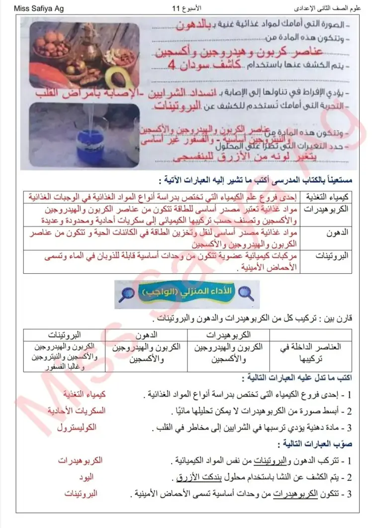 ولمتابعة بقية حل الأداء الصفي وواجب وتقييم الأسبوع الحادي عشر علوم للصف الثاني الإعدادي ترم أول 2026 يمكن للطلاب الرجوع إلى الصور المرفقة التي تتضمن جميع الإجابات الواردة في الملف، وهي كالتالي: