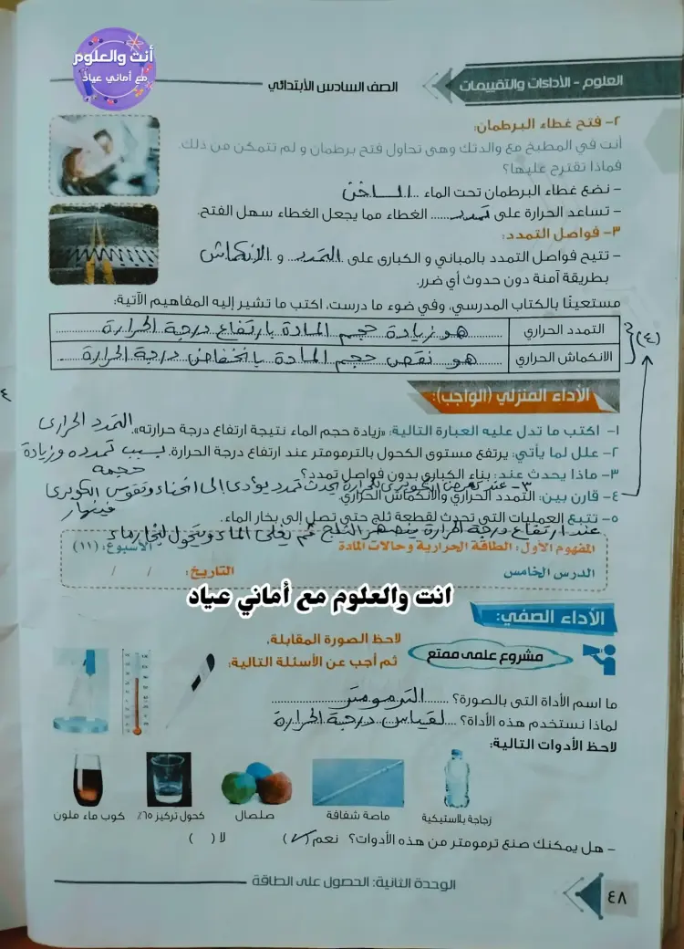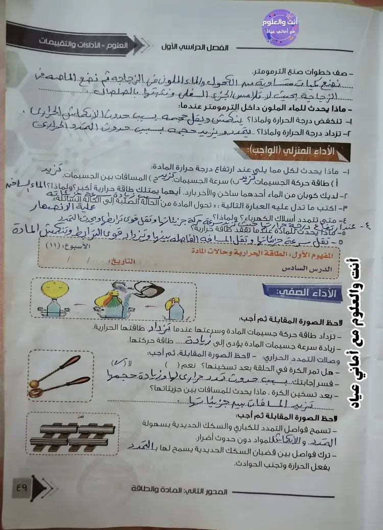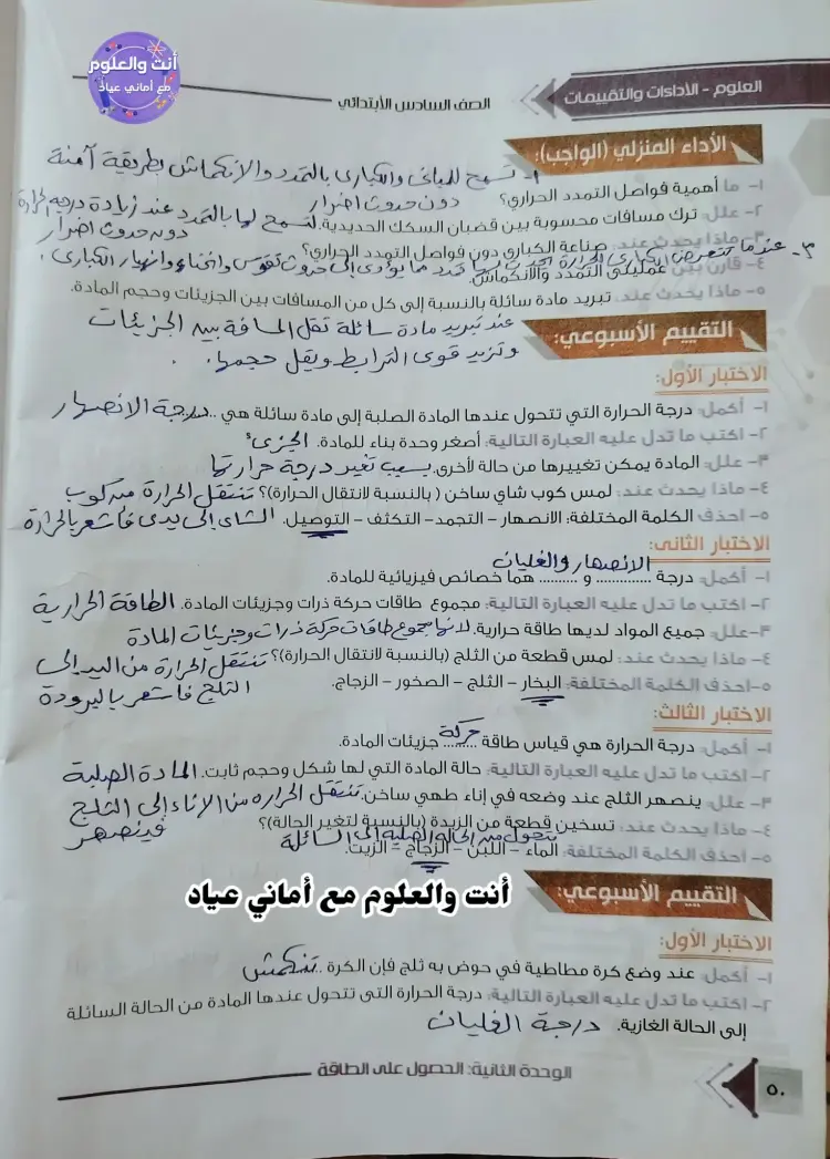 وللاطلاع على بقية حل الأداء الصفي وواجب وتقييم الأسبوع الحادي عشر علوم للصف السادس الابتدائي ترم أول 2026 يمكن للطلاب مراجعة الصور المرفقة التي تحتوي على جميع الإجابات الواردة داخل الملف كالتالي: